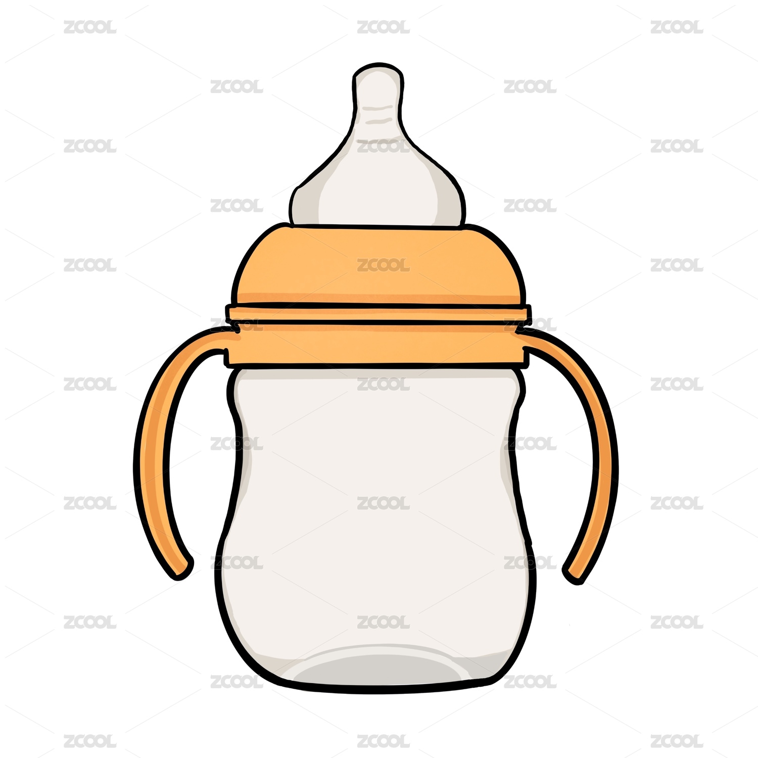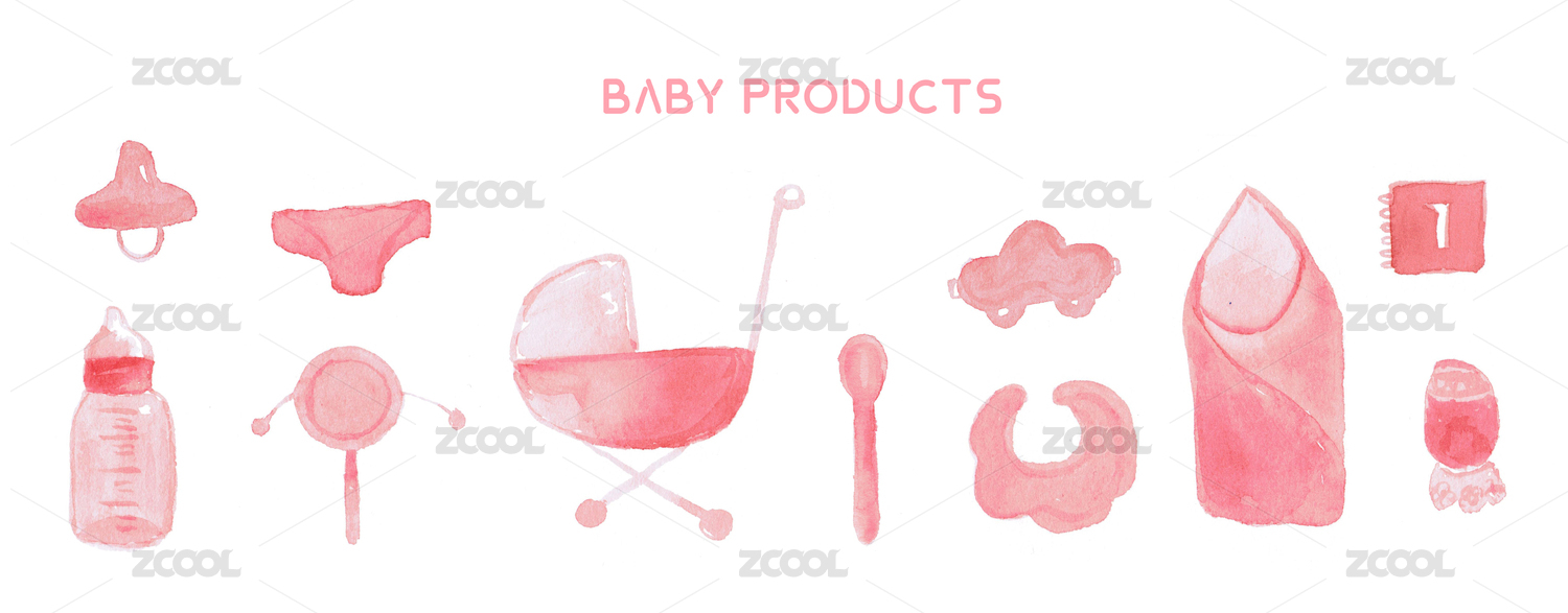 手繪矢量卡通母嬰用品奶瓶奶嘴紙尿褲嬰幼兒