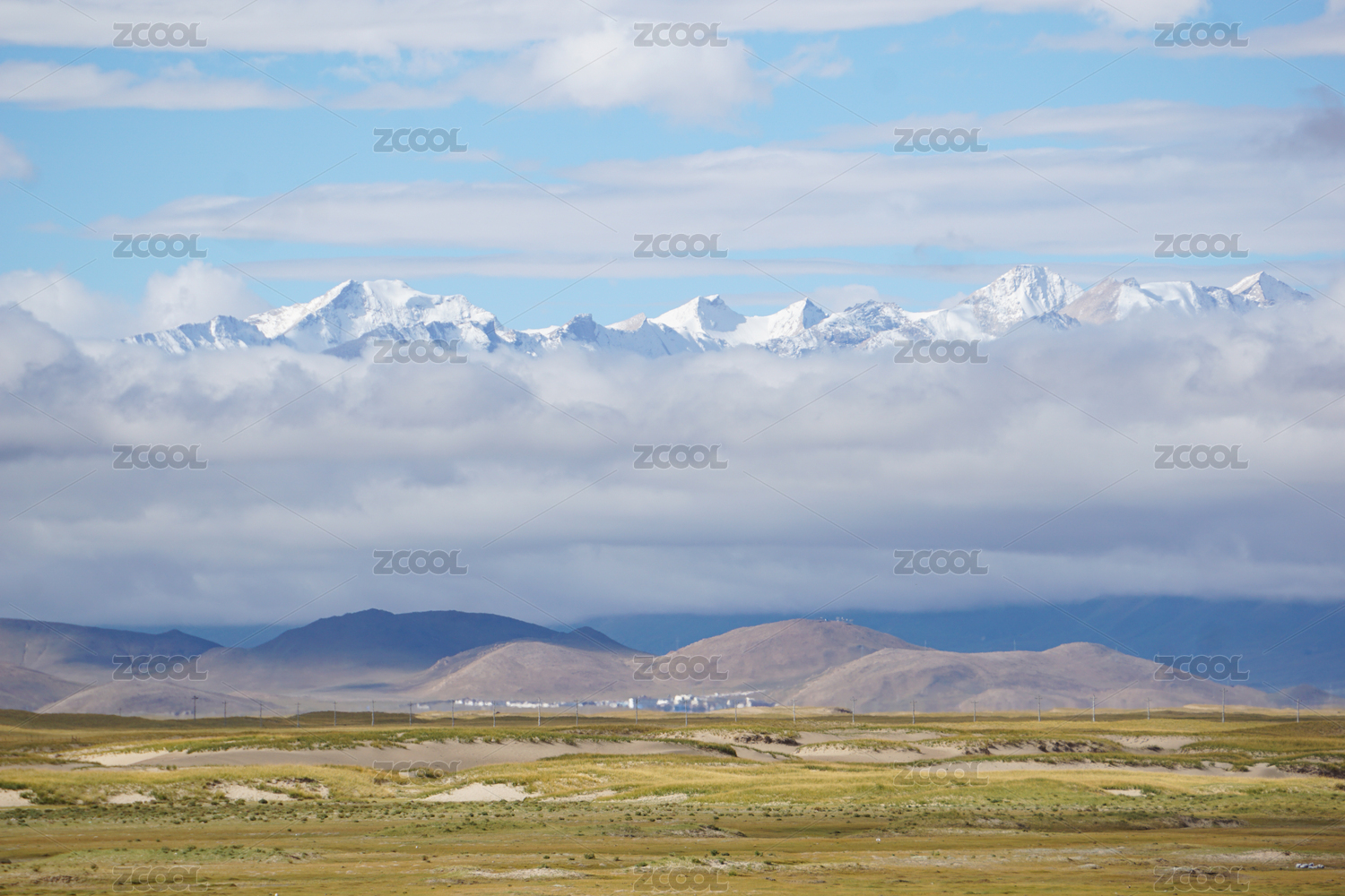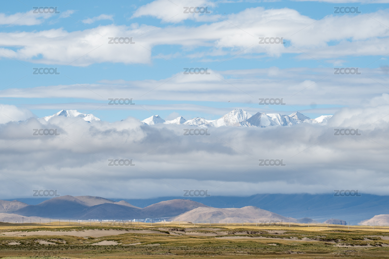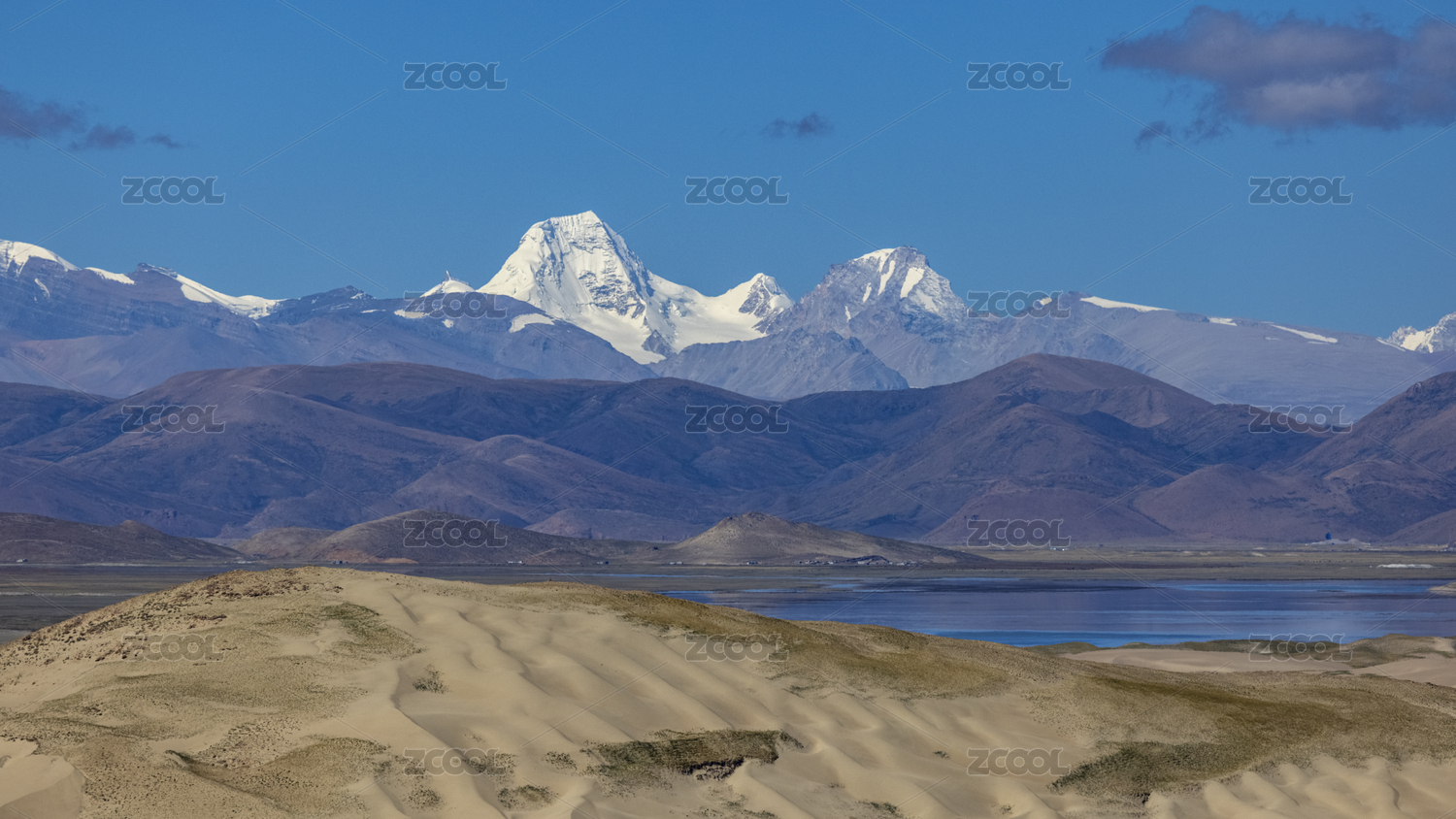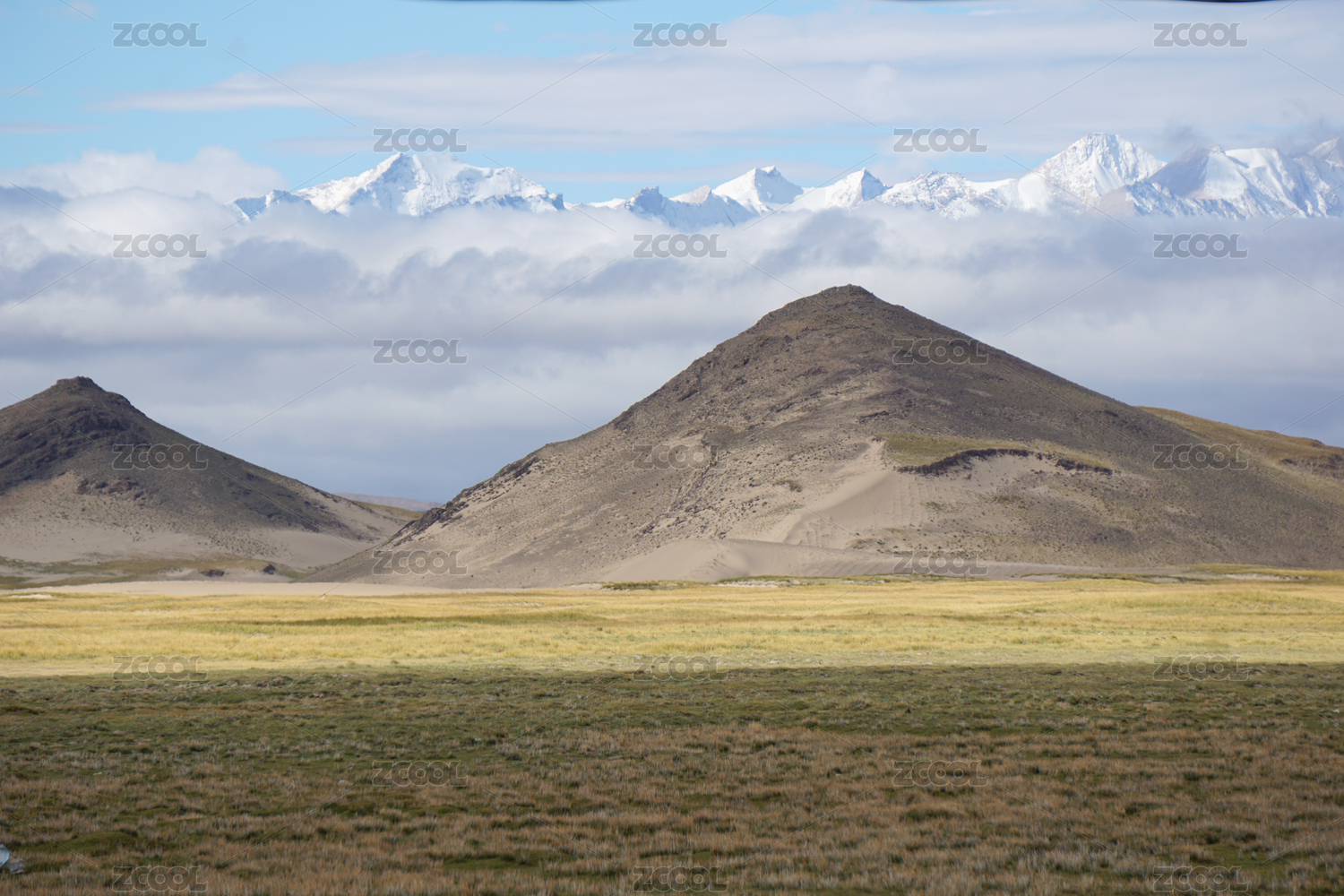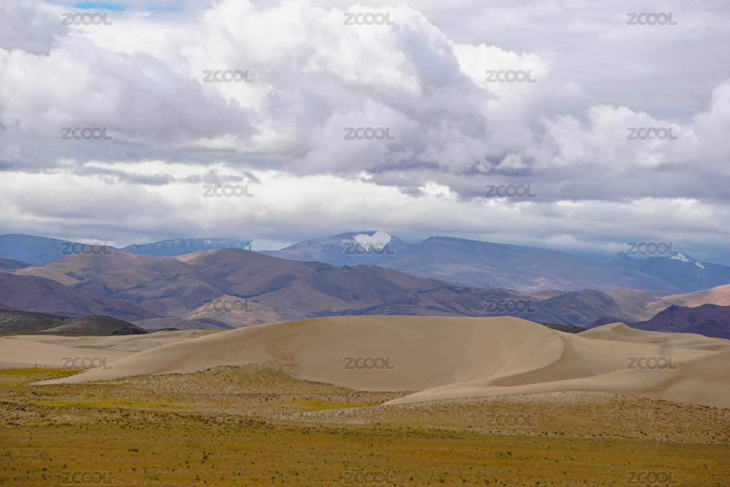 中國西藏阿里十萬沙丘與雪山喜馬拉雅山脈