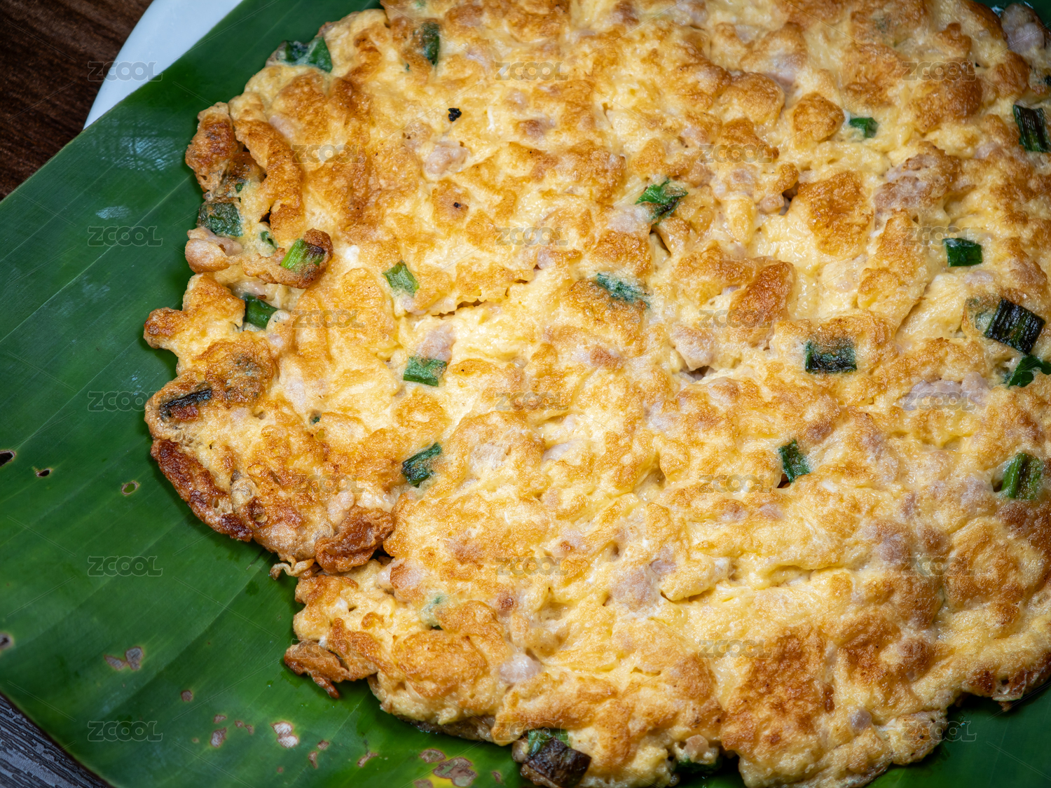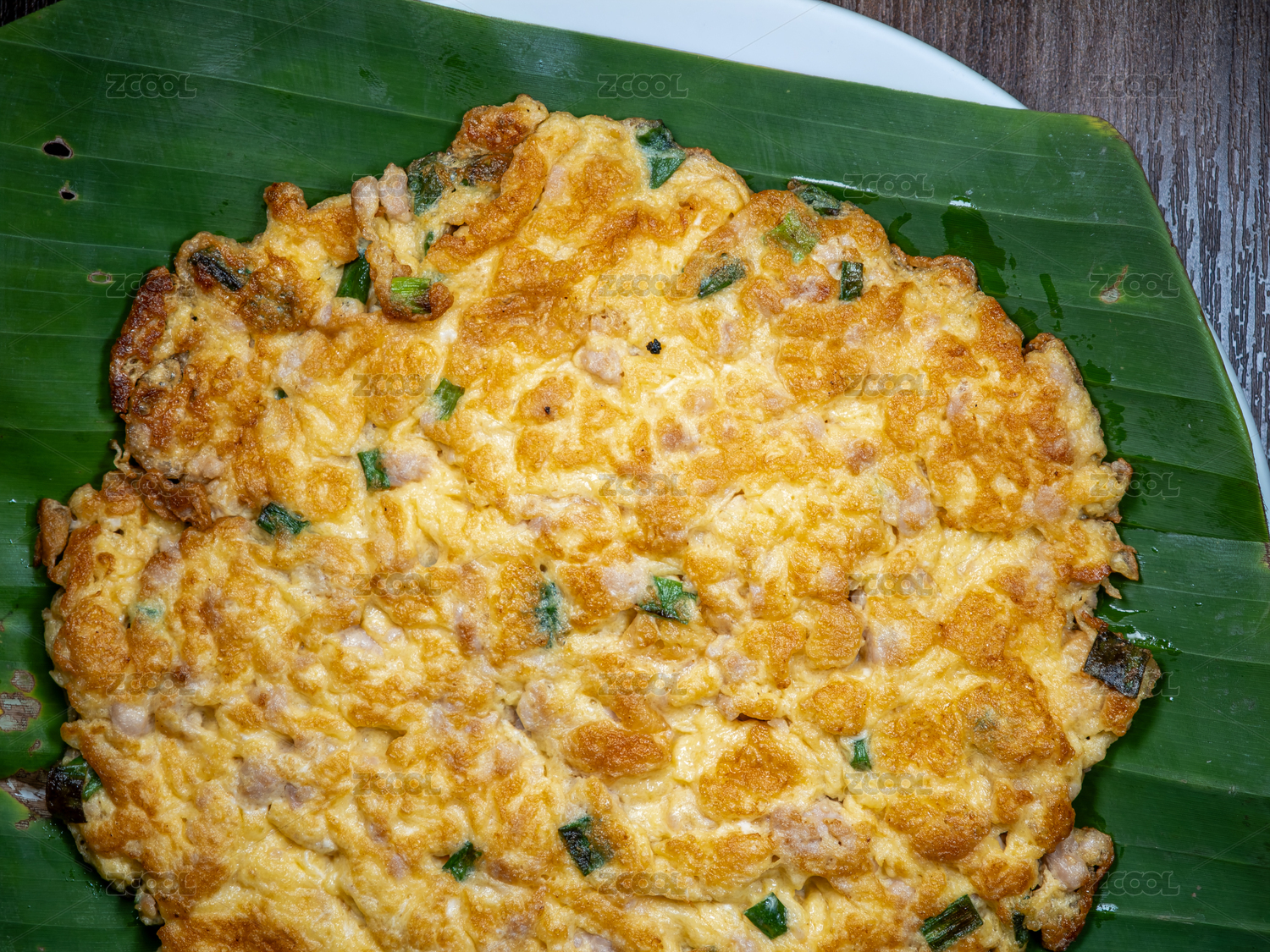 盛放在香蕉葉上的泰式豬肉煎蛋