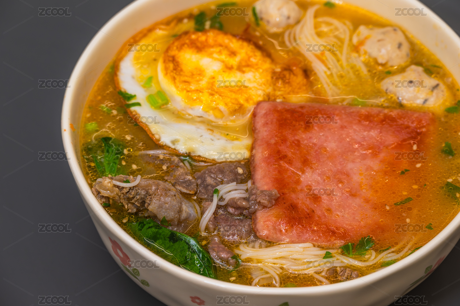 一碗美味的拉面配煎蛋、叉燒和牛肉