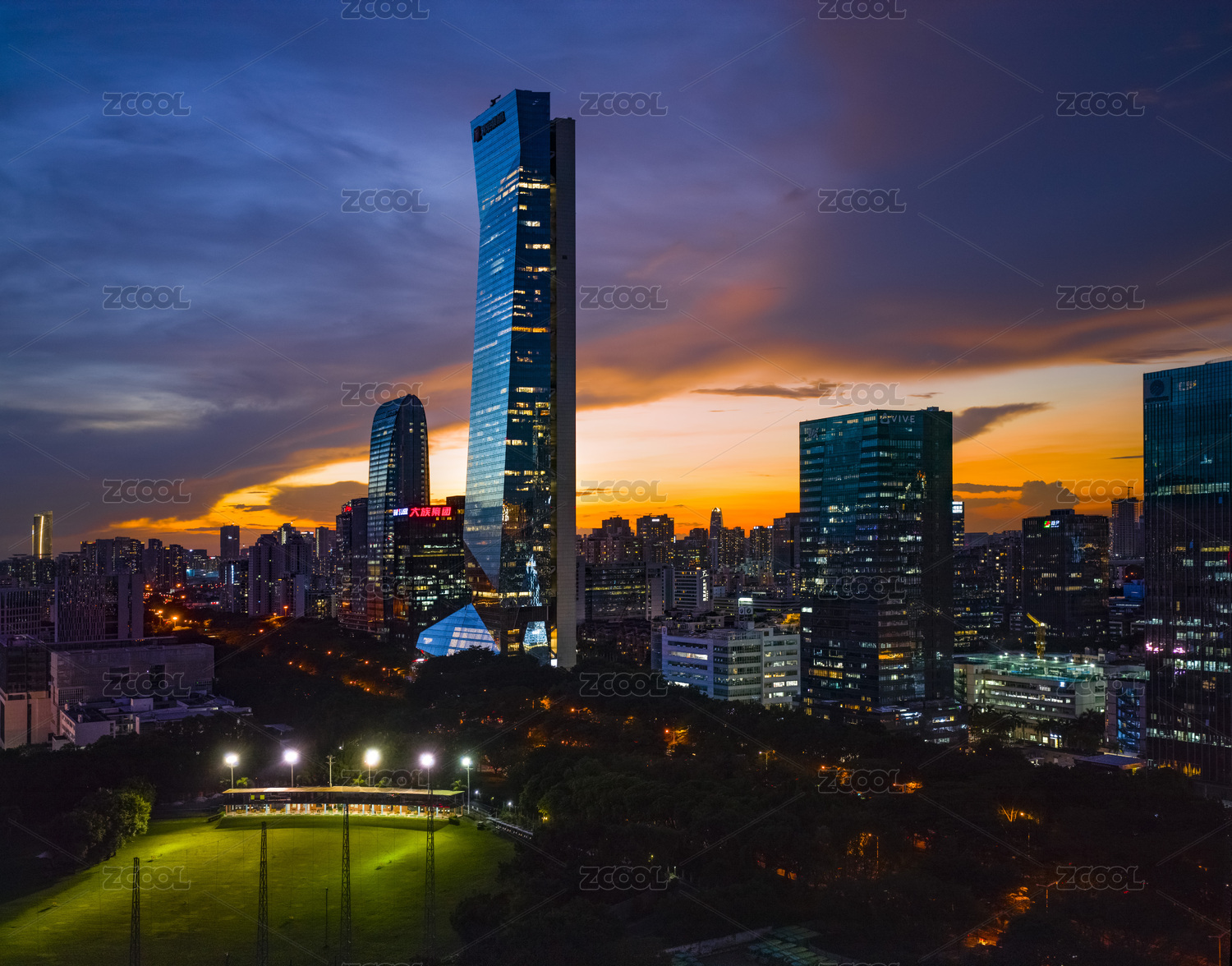 傍晚的深圳高層寫字樓