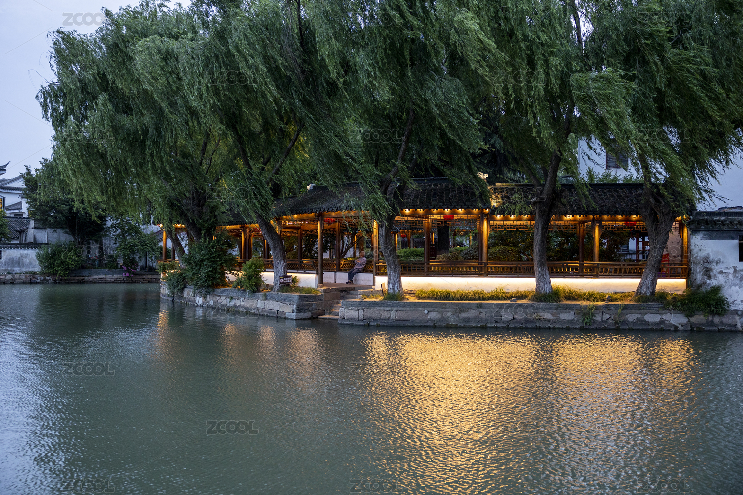 中國(guó)江蘇昆山錦溪古鎮(zhèn)的傍晚