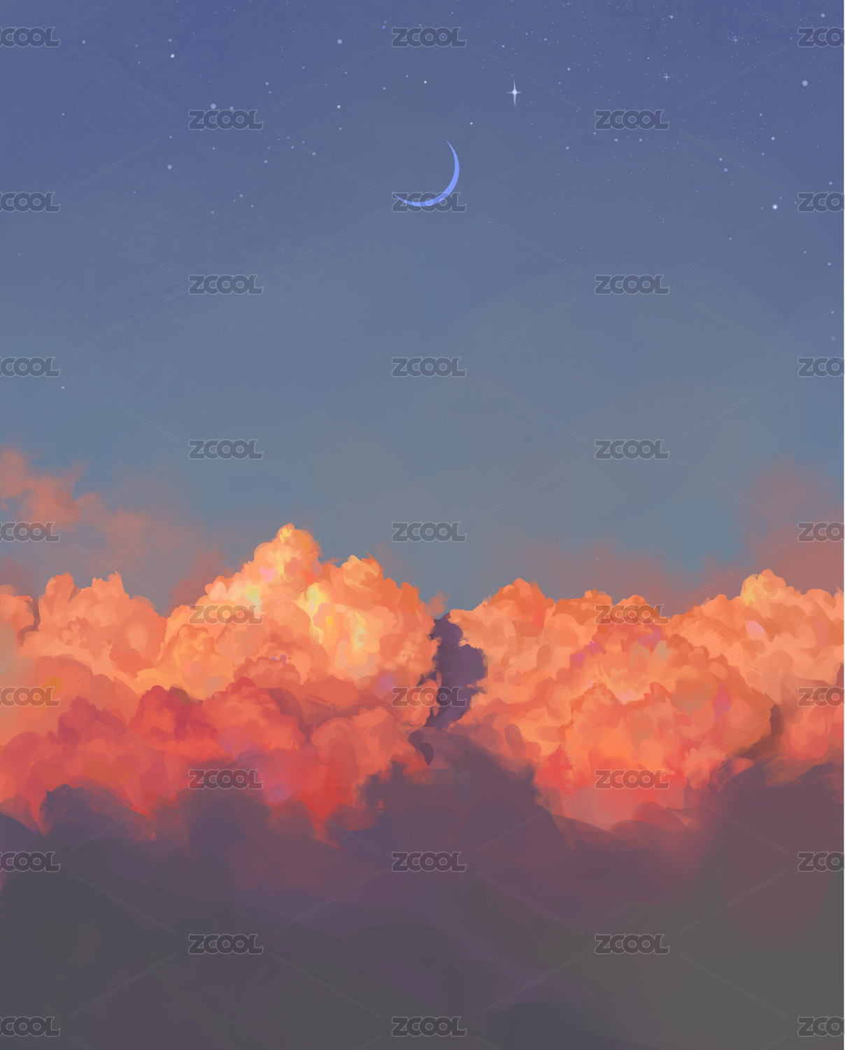傍晚火燒云的天空有條鯨魚 超現(xiàn)實(shí)主義原畫 數(shù)碼繪畫