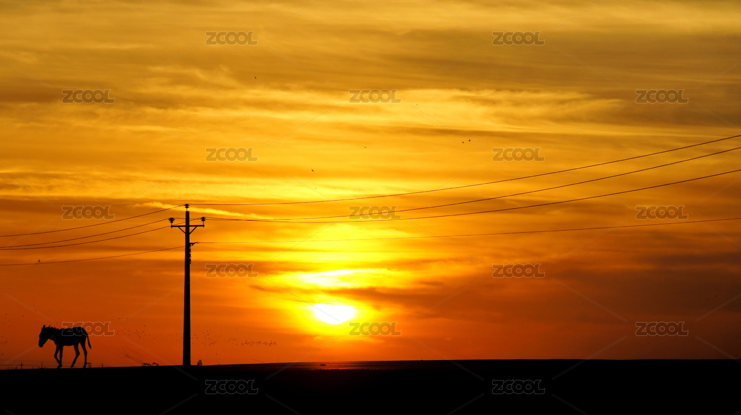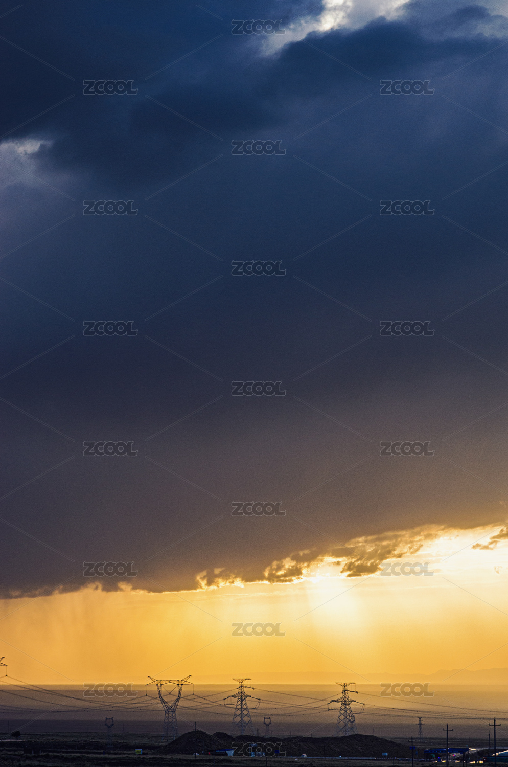 中國(guó)青海傍晚路上的高壓電線桿