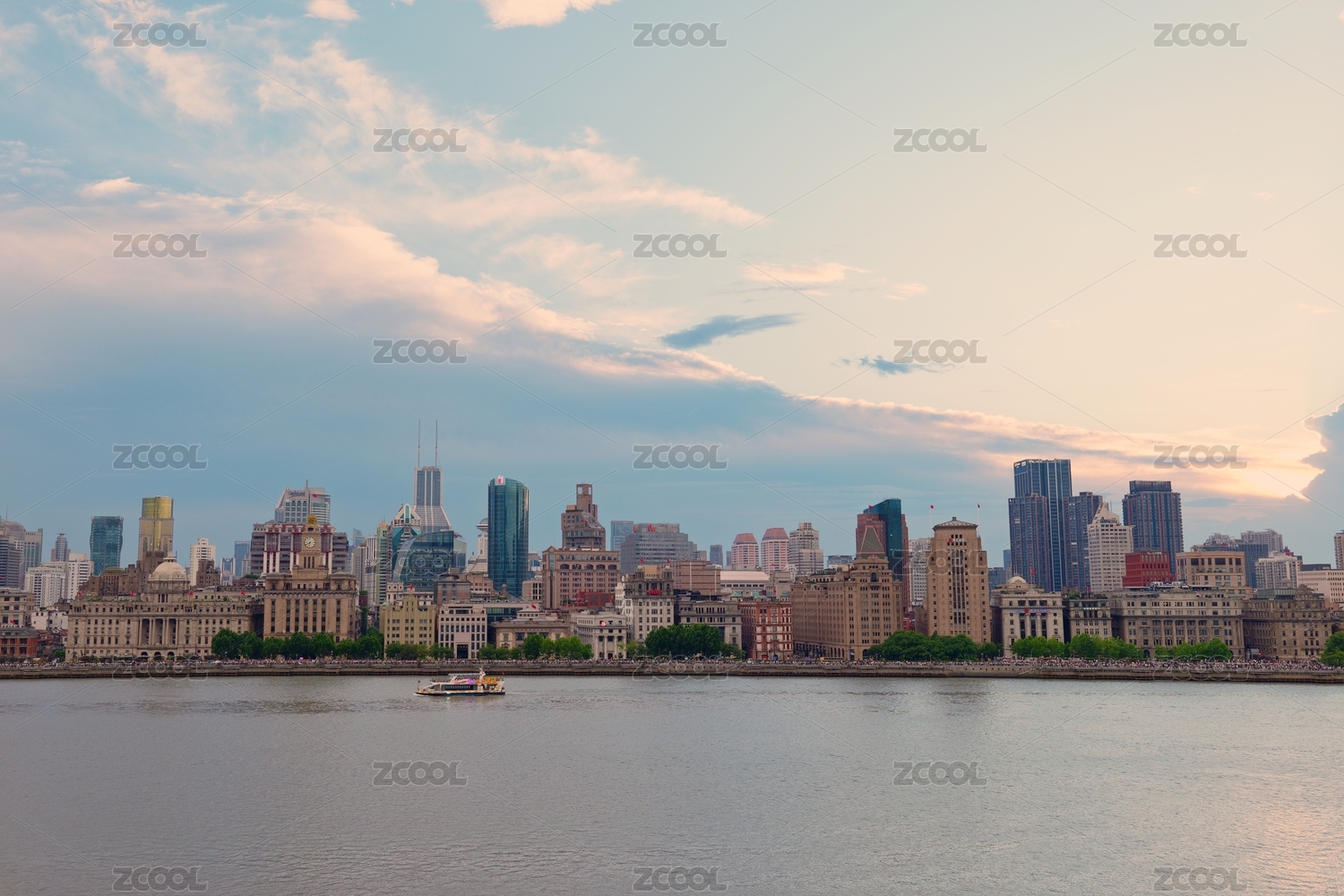 上海黃浦江外灘傍晚的晚霞風(fēng)景
