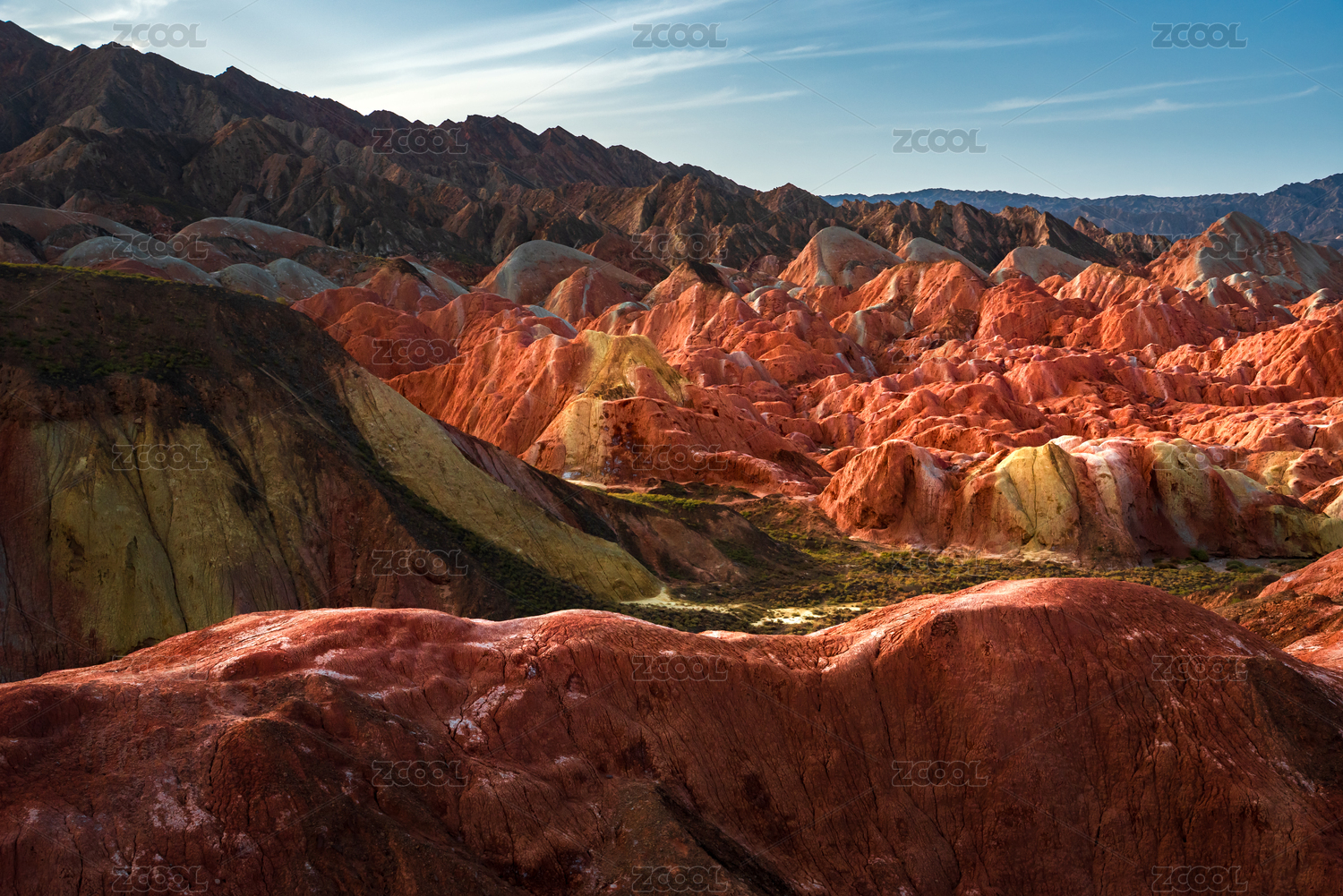 甘肅省張掖市七彩丹霞景區(qū)彩色丘陵傍晚風(fēng)光