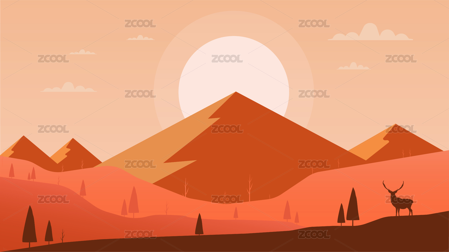傍晚風(fēng)景矢量扁平剪影插畫