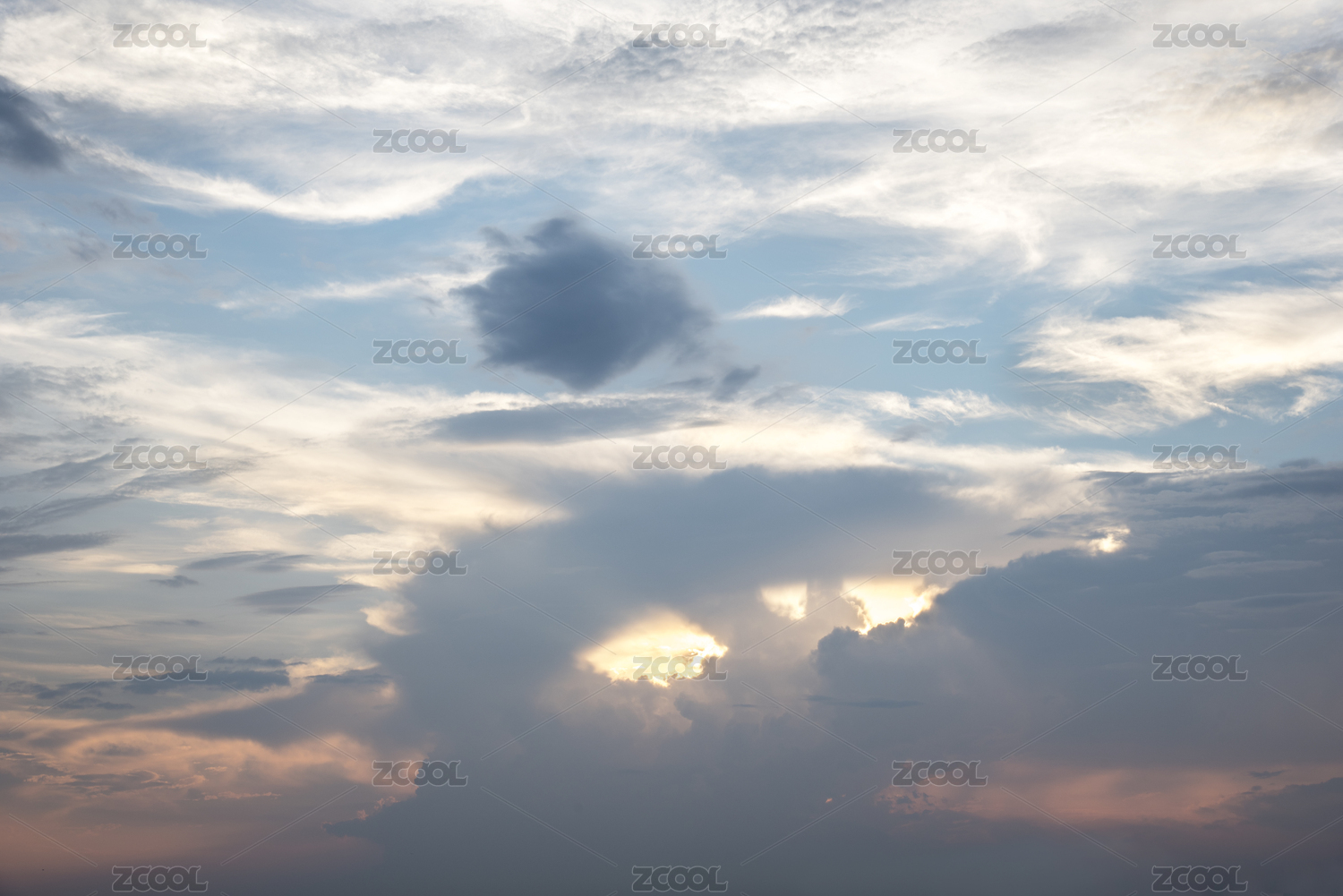 傍晚的天空上出現(xiàn)的霞光和云彩