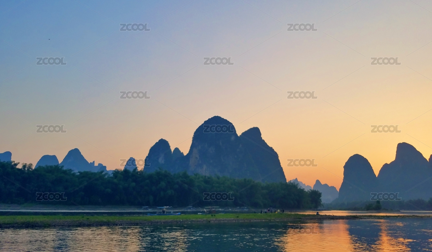 廣西漓江傍晚日落夕陽的景色