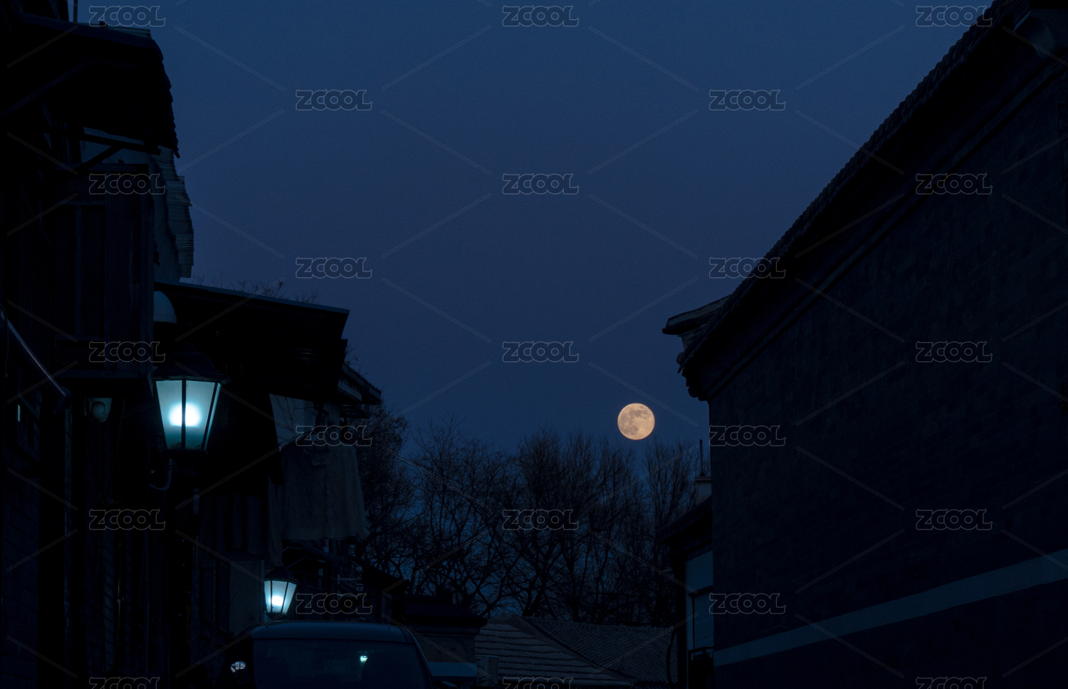 冬日傍晚圓月