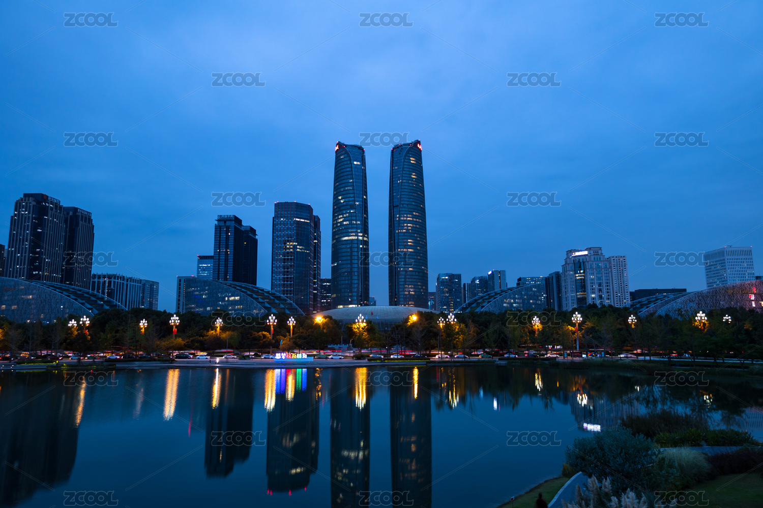 傍晚成都金融城建筑群風(fēng)光