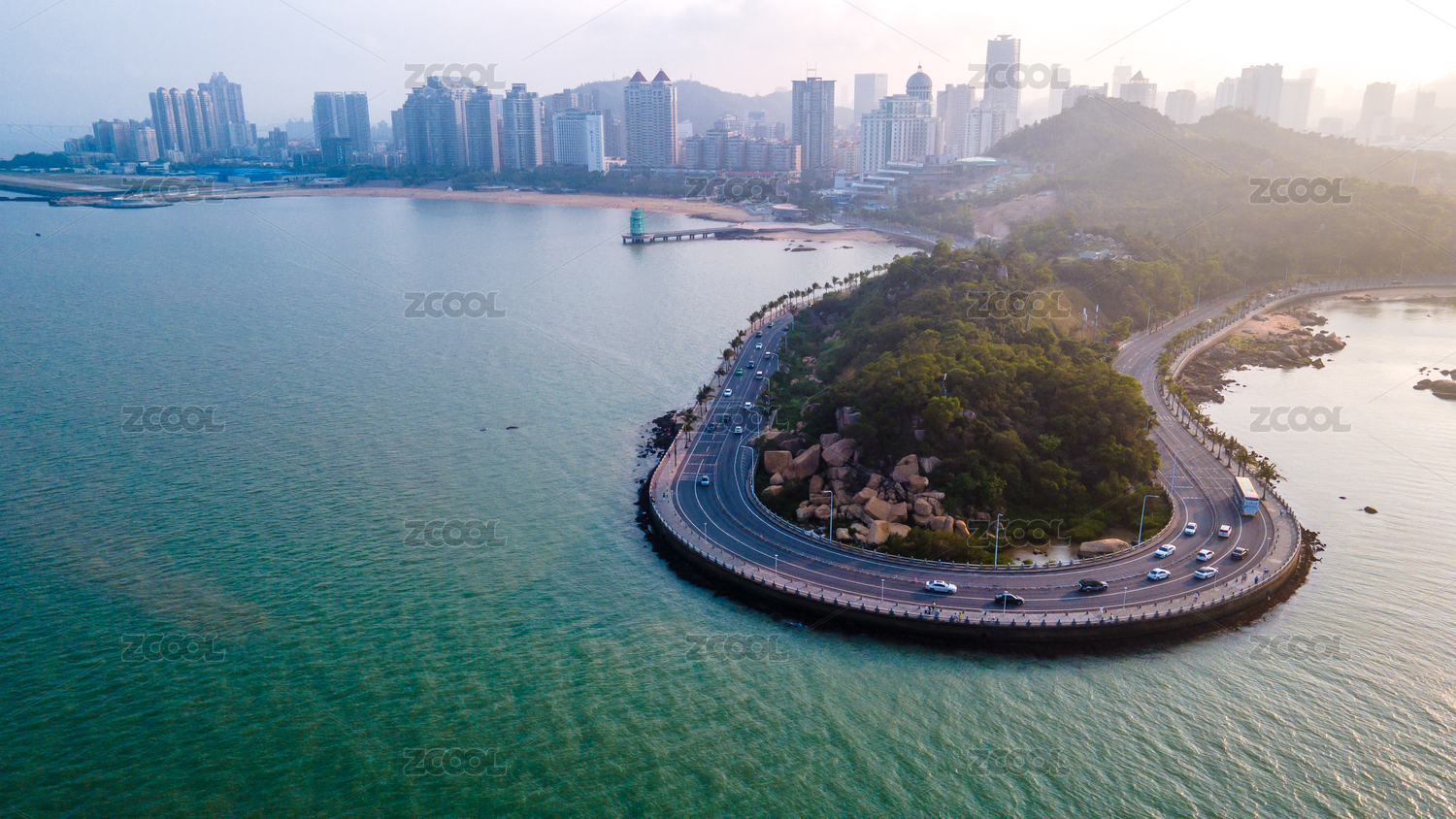 航拍中國廣東珠海情侶路沿岸城市風(fēng)光