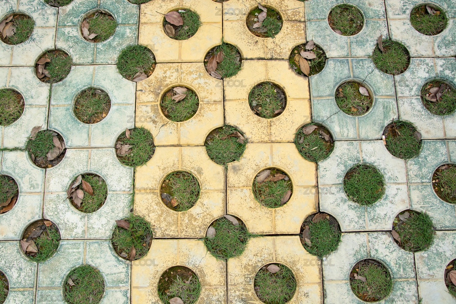 帶孔磚塊與草相間鋪設(shè)的地面
