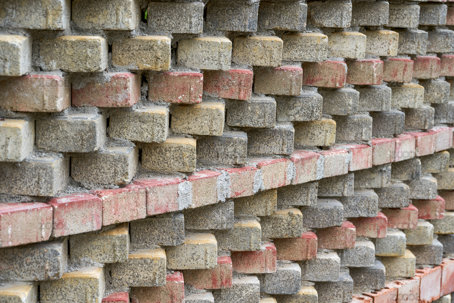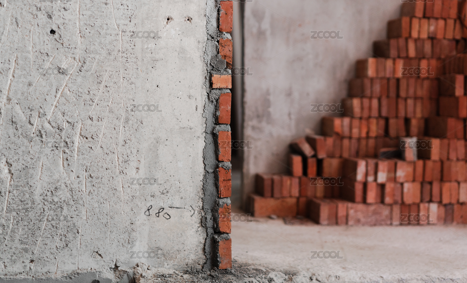 建筑工地堆砌的磚塊與墻面特寫