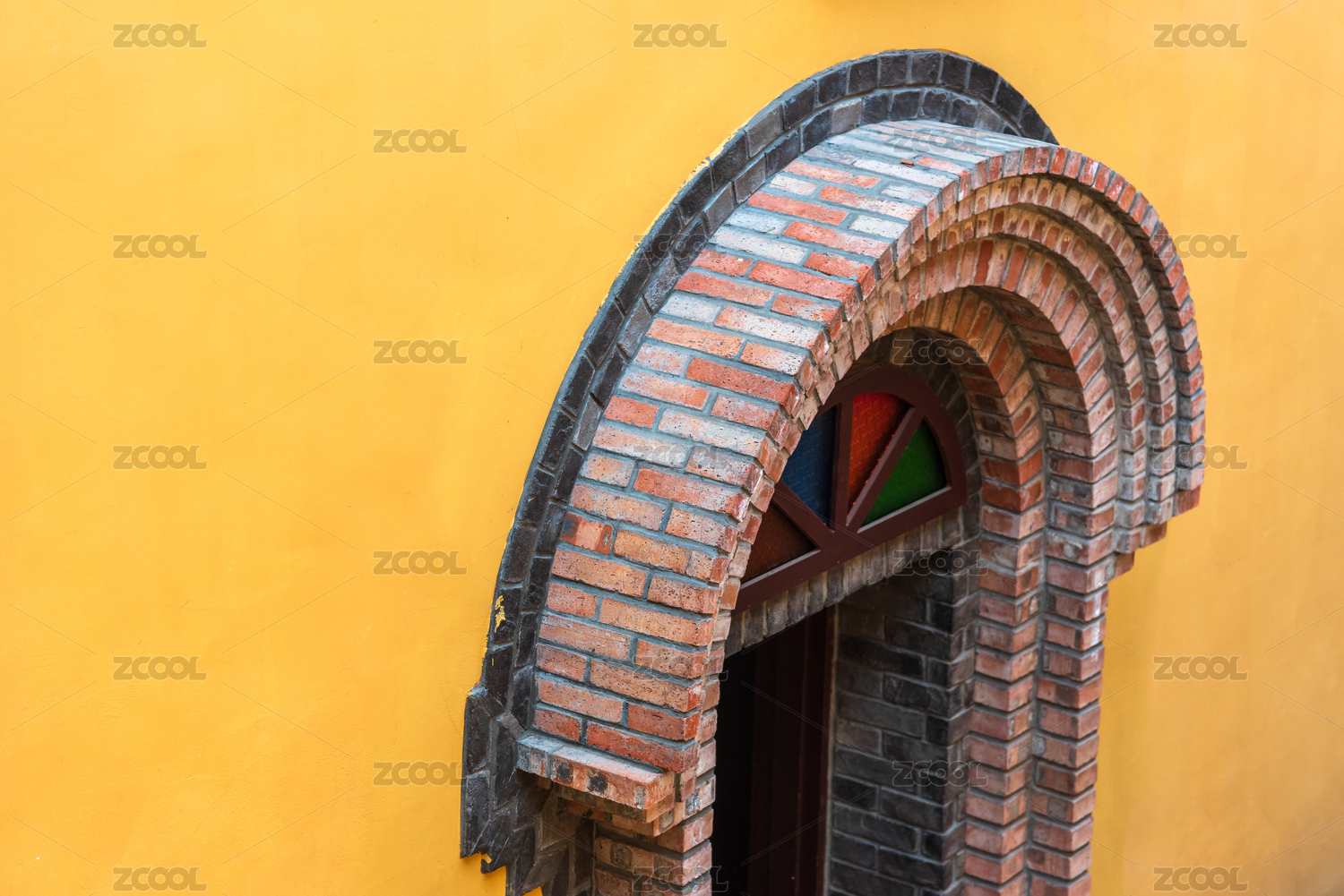 重慶渝中區(qū)中山四路復(fù)古建筑黃墻與磚塊拱門