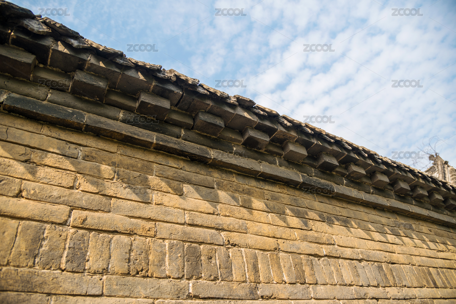 磚塊壘砌的老房子墻面和墻檐特寫