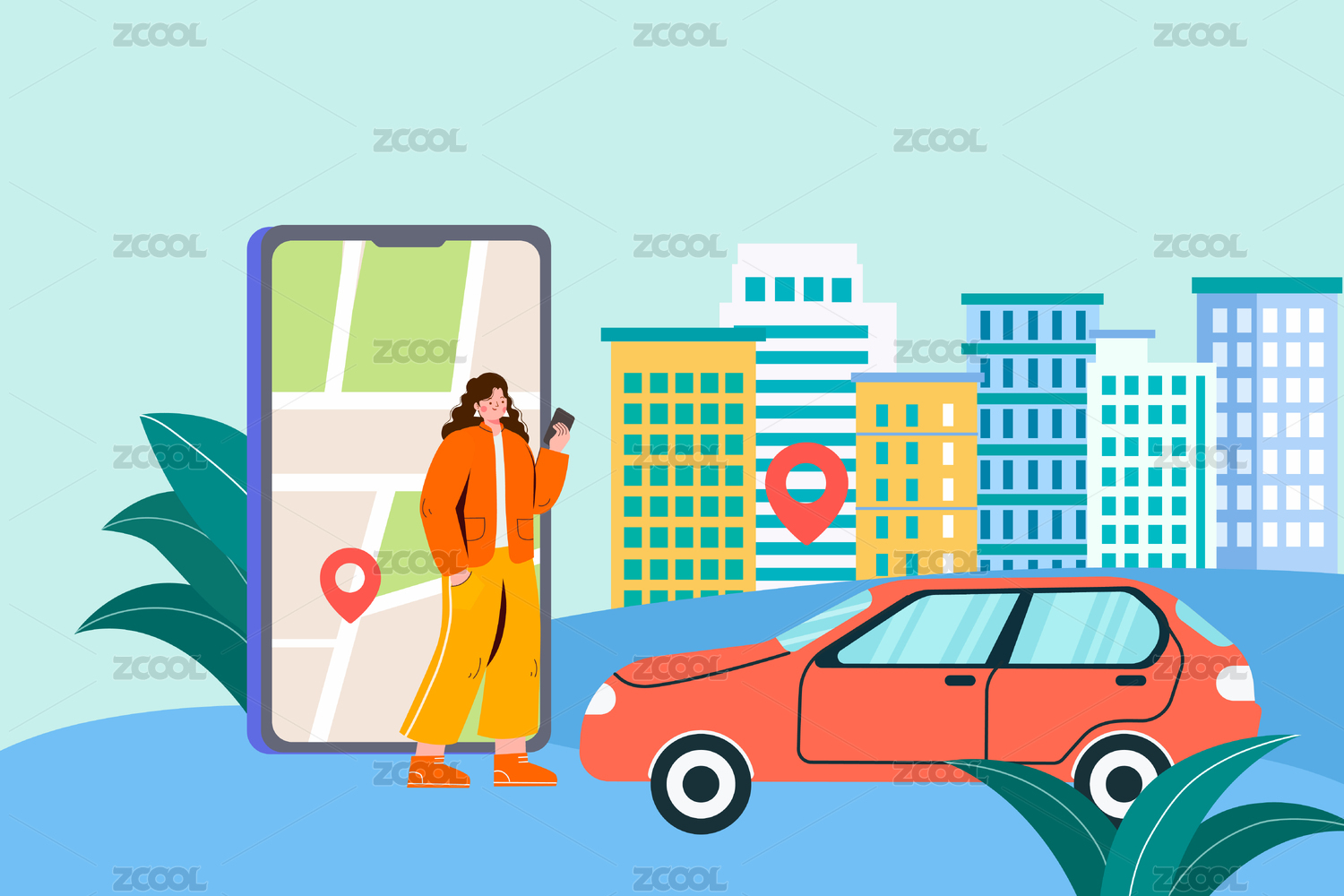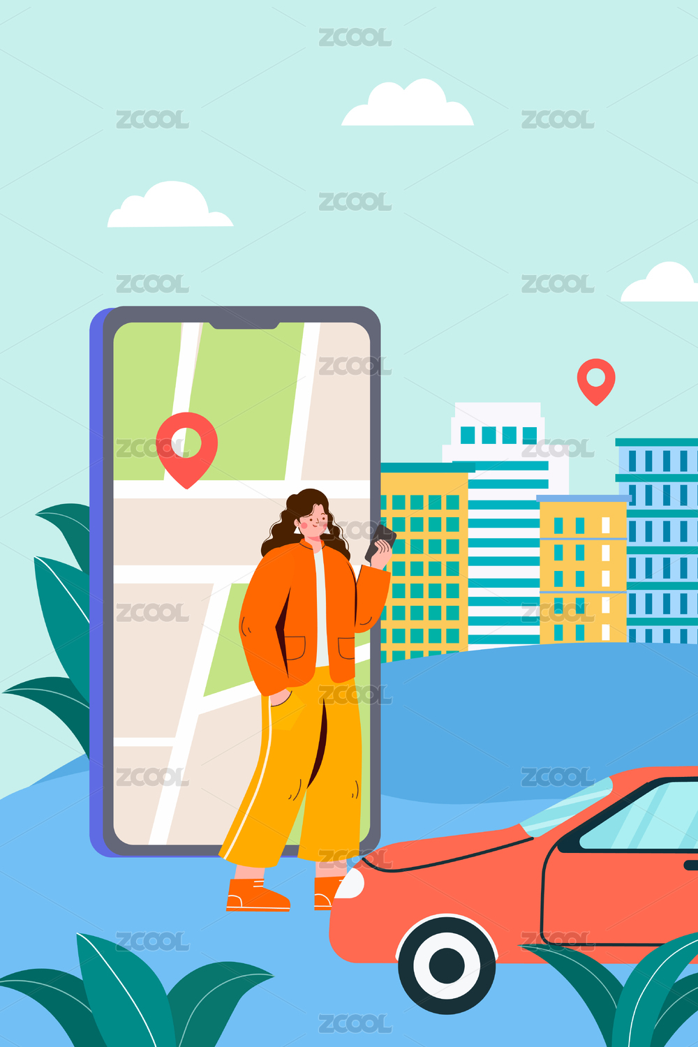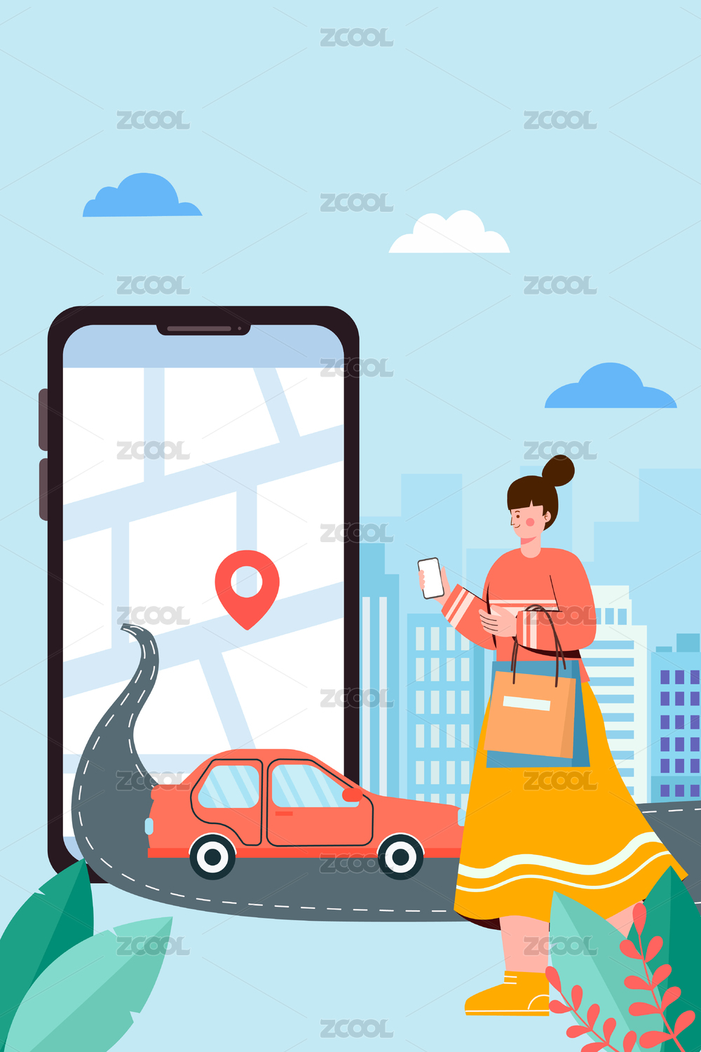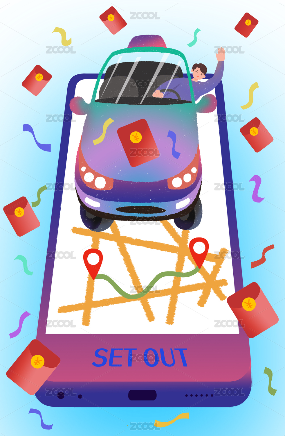 網(wǎng)約車概念插畫