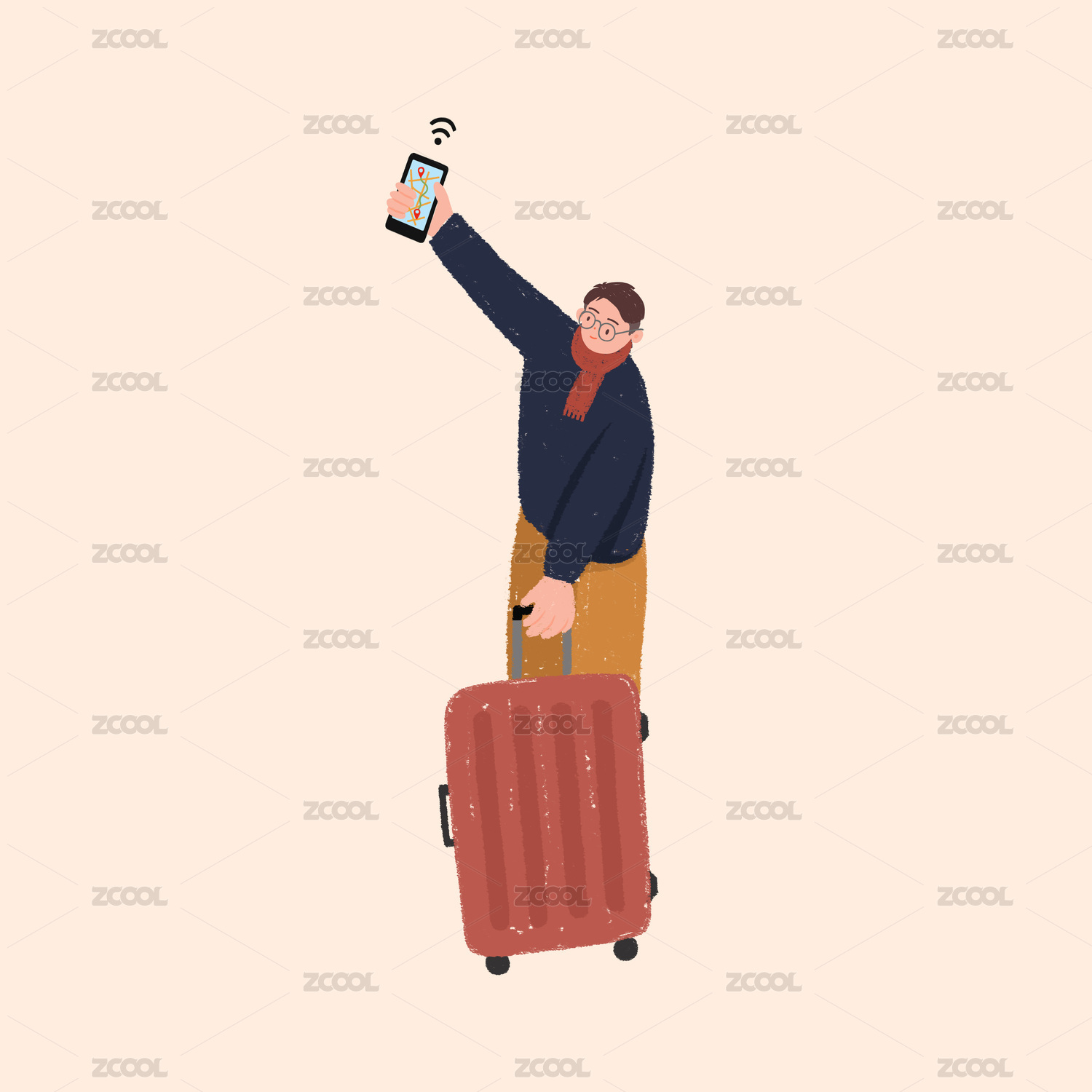 提著行李箱的男生預(yù)約網(wǎng)約車插畫人物元素