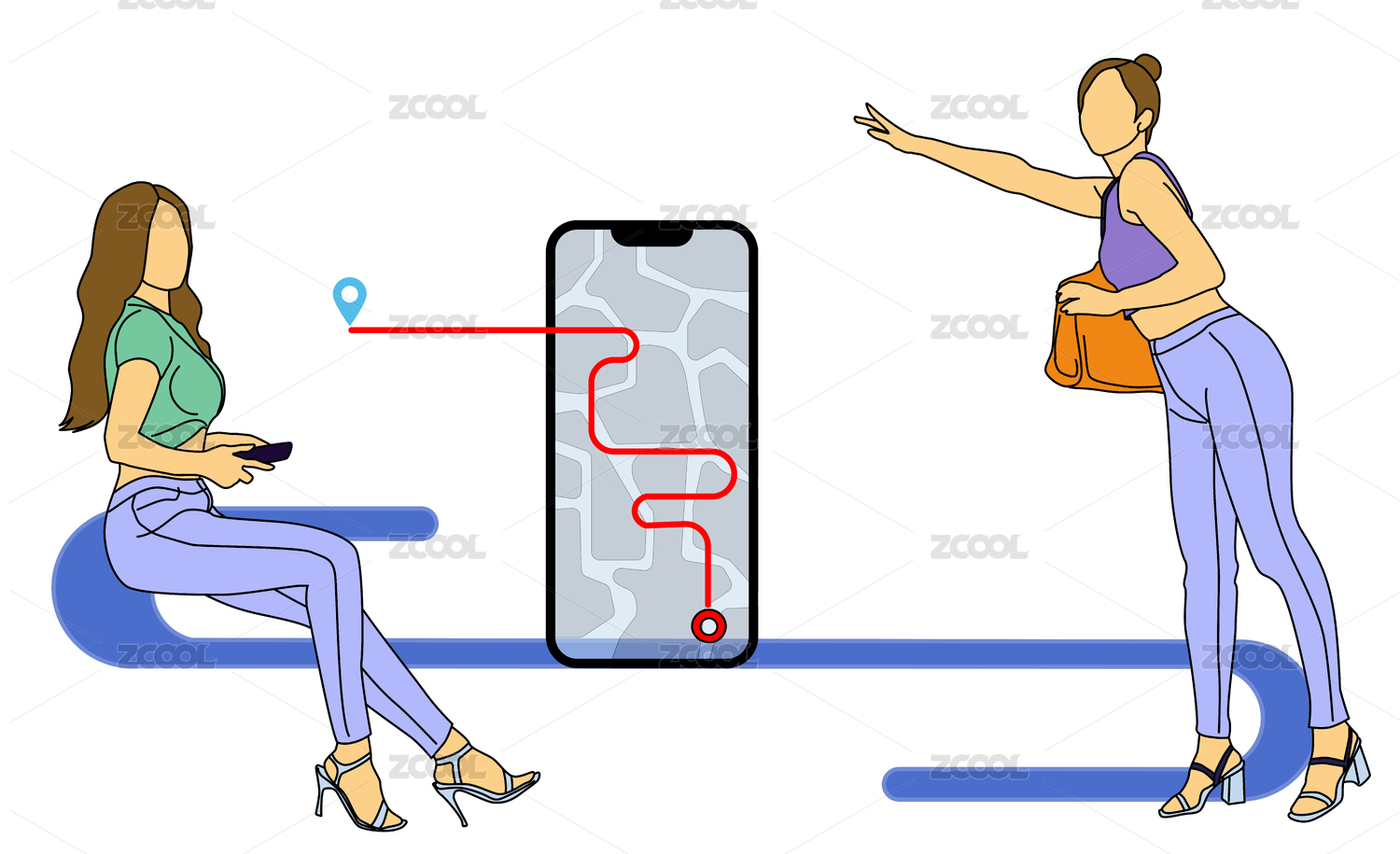 呼叫網(wǎng)約車矢量插畫