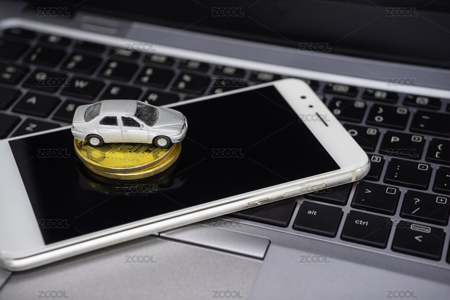 網(wǎng)約車概念圖片電腦鍵盤上智能手機(jī)上的汽車