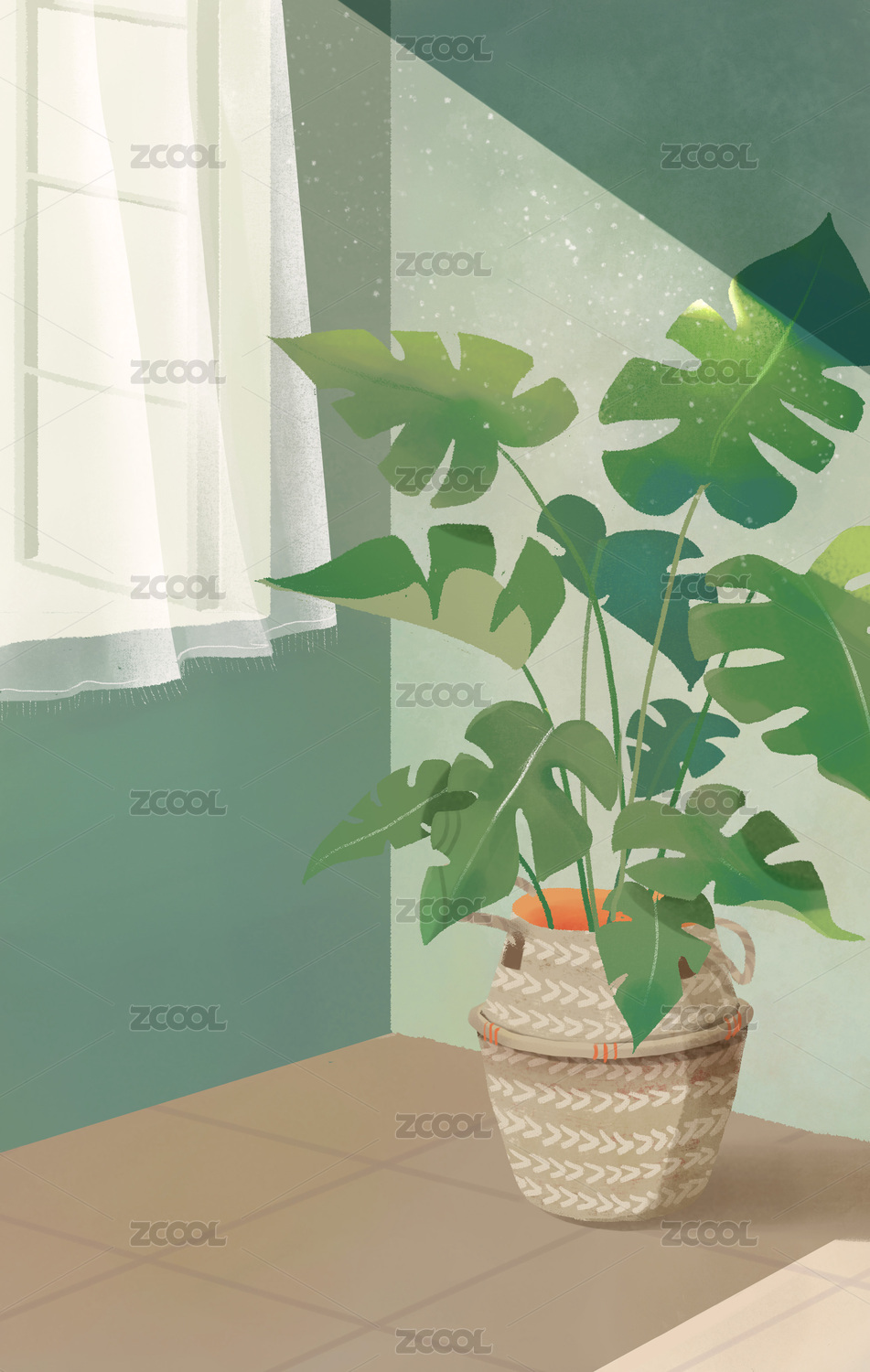 卡通風(fēng)格龜背竹盆栽