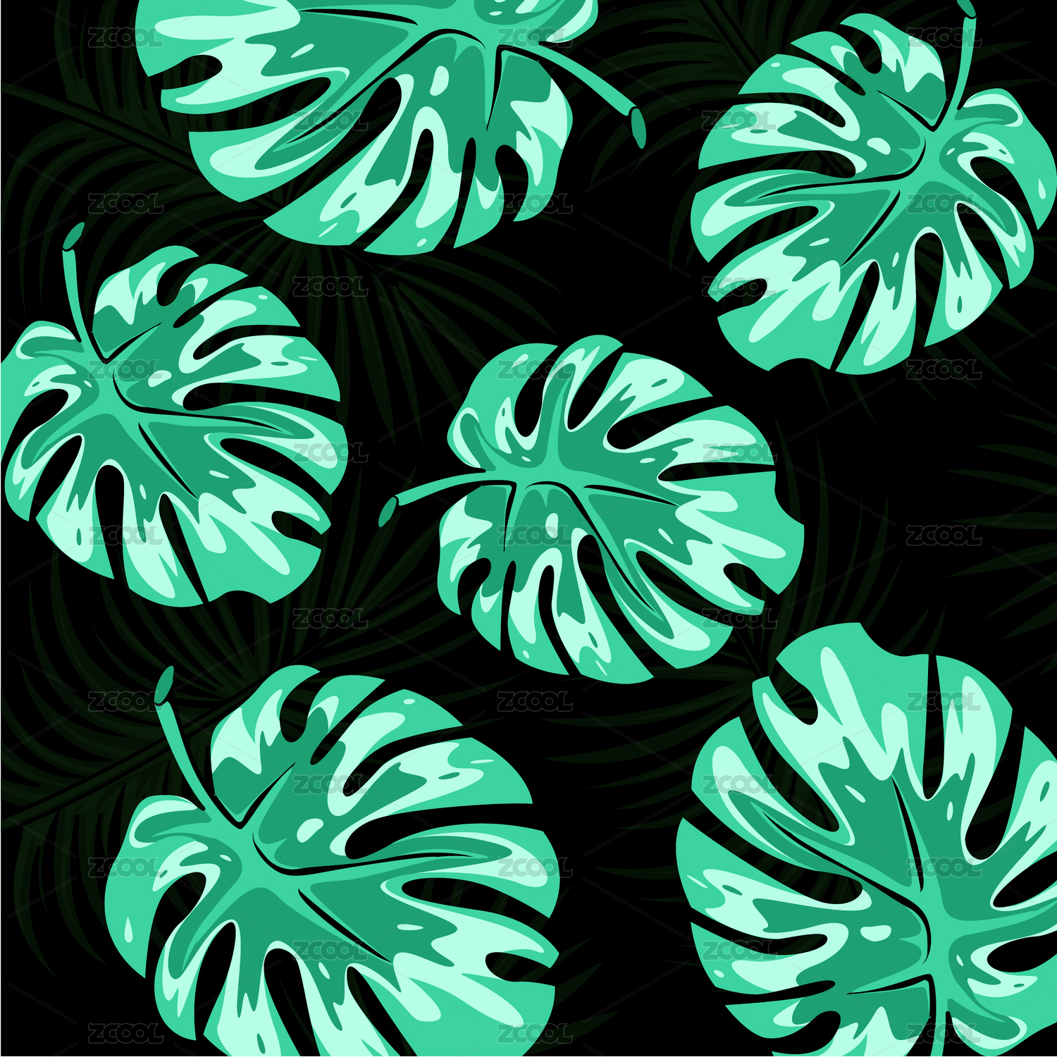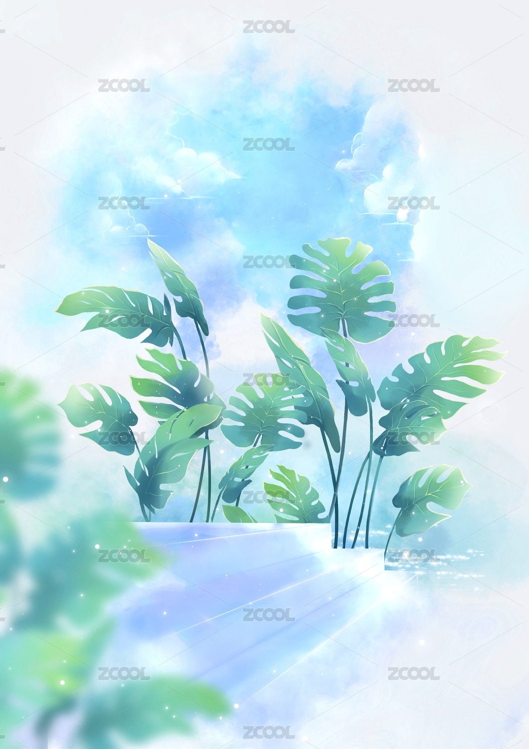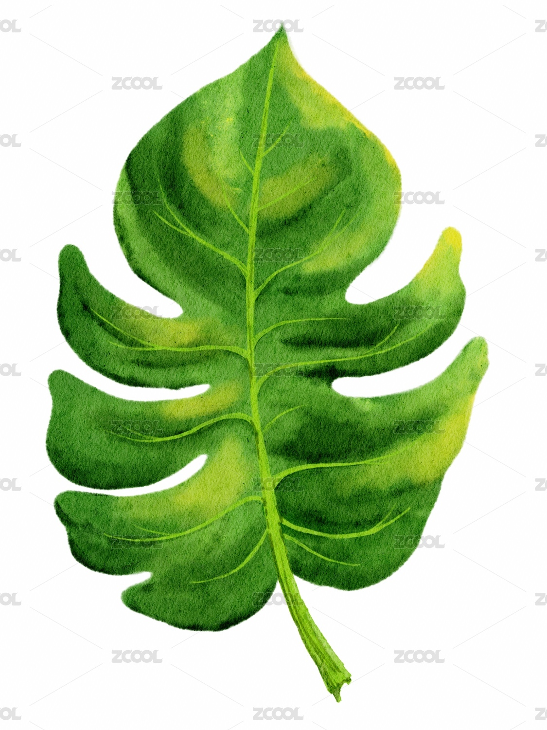 龜背竹葉子水彩插畫