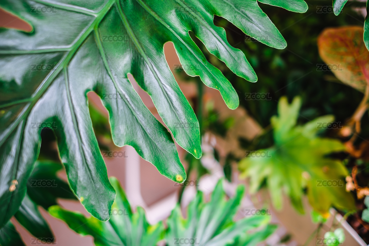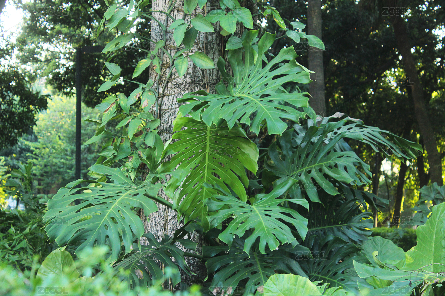 一片綠植中的龜背竹