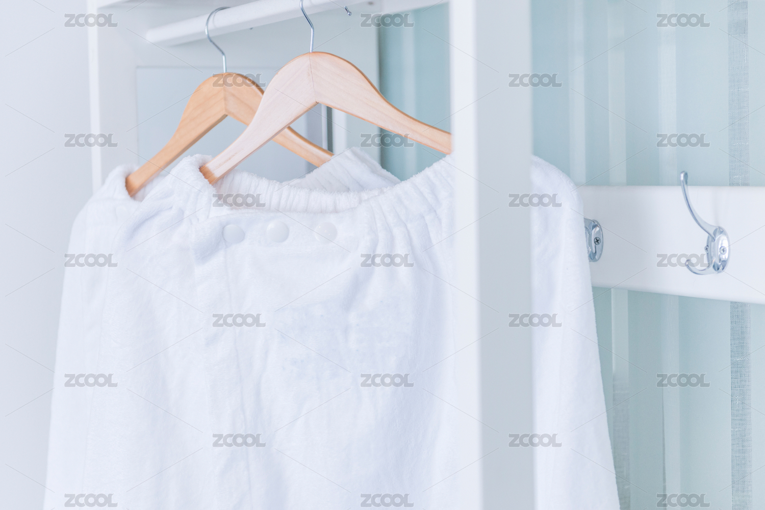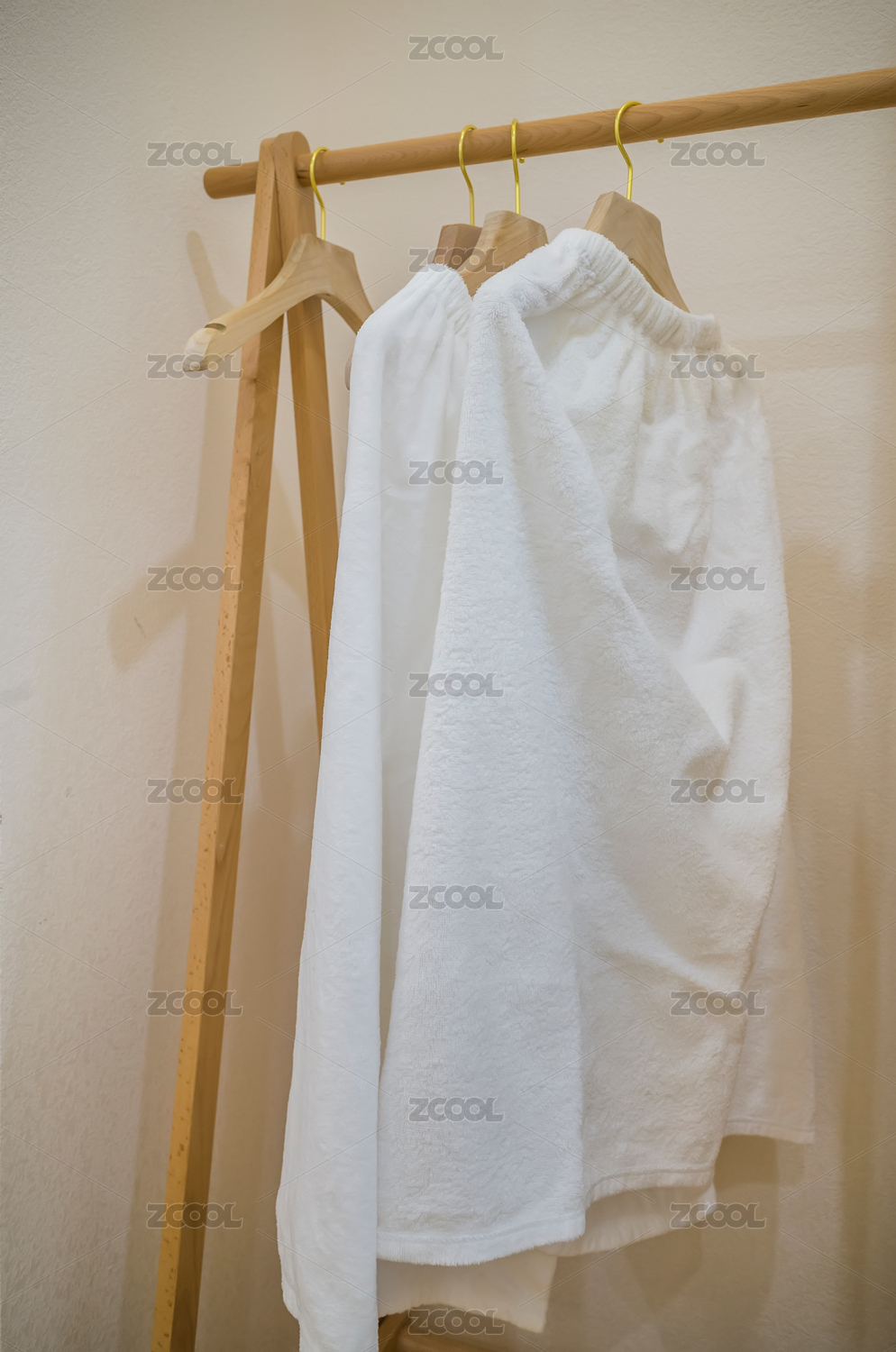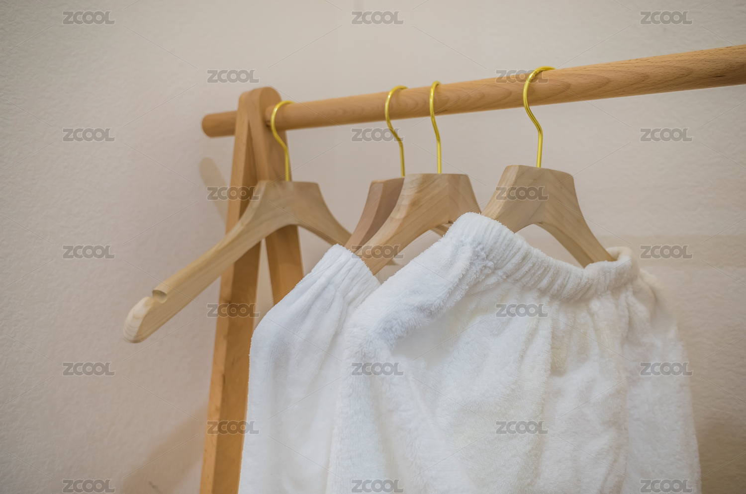 實木衣架懸掛的純白毛巾短裙
