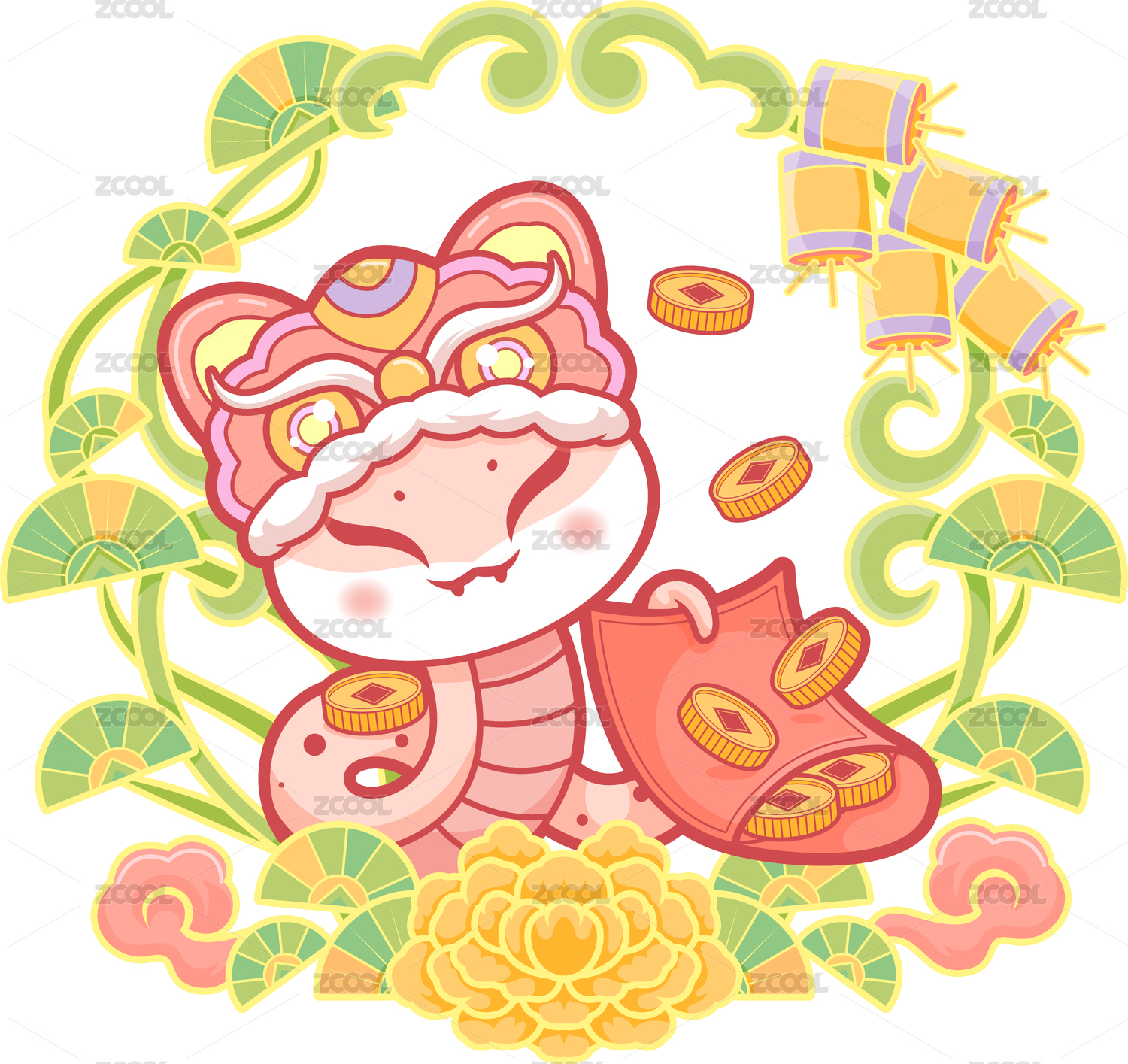 2025新年蛇年春節(jié)生肖可愛招財小蛇