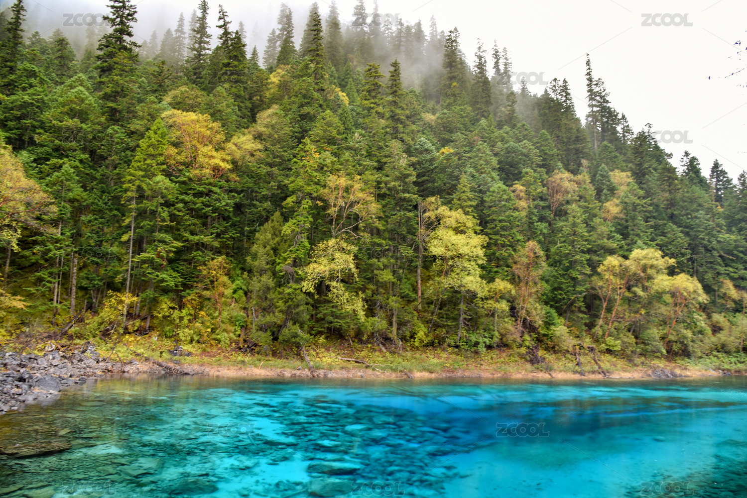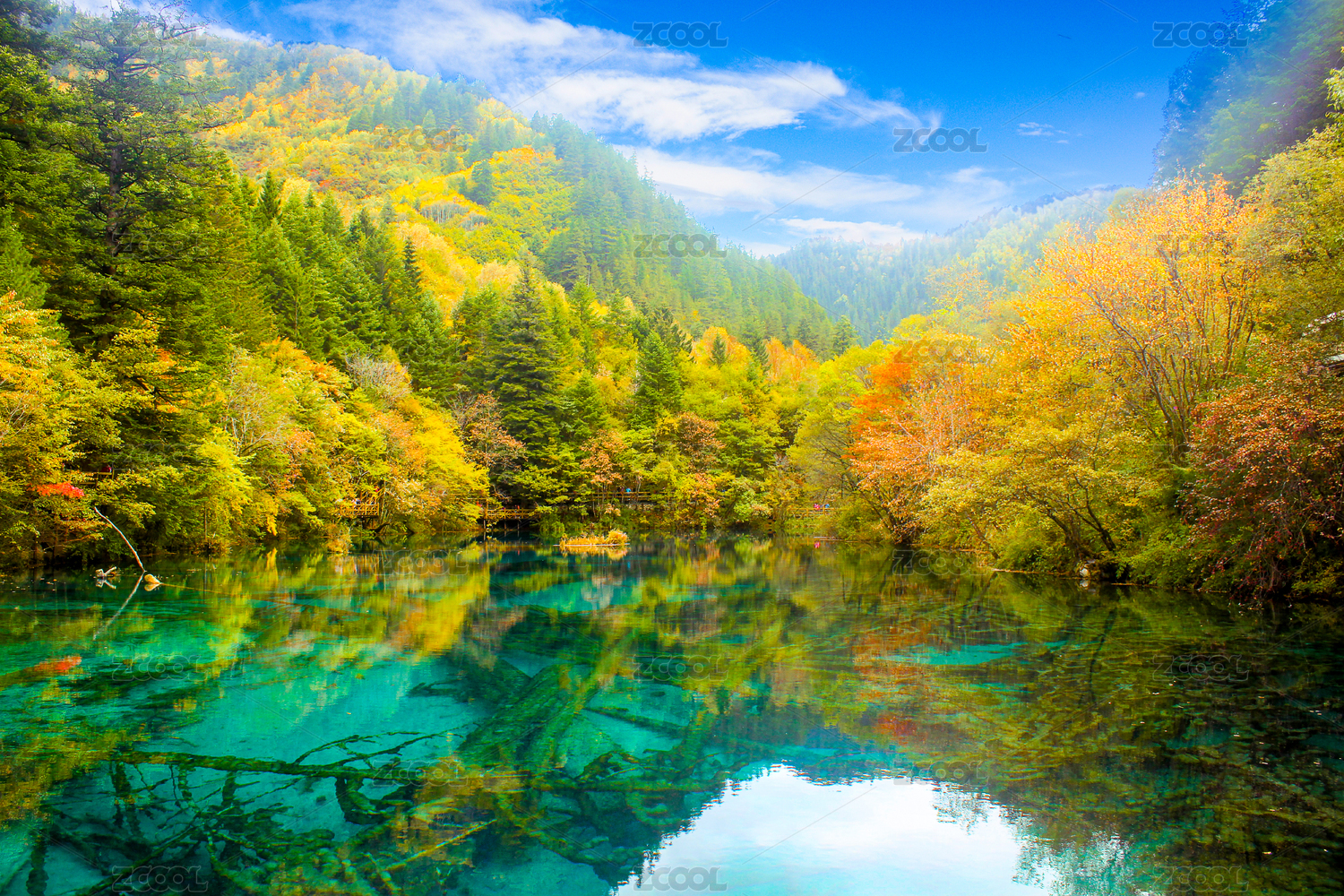 中國(guó)四川九寨溝五花海秋季彩林山水風(fēng)光