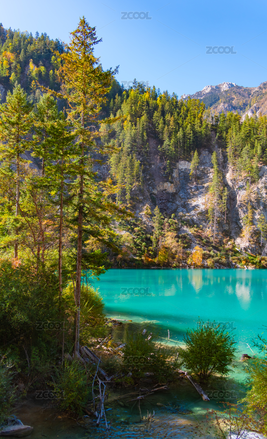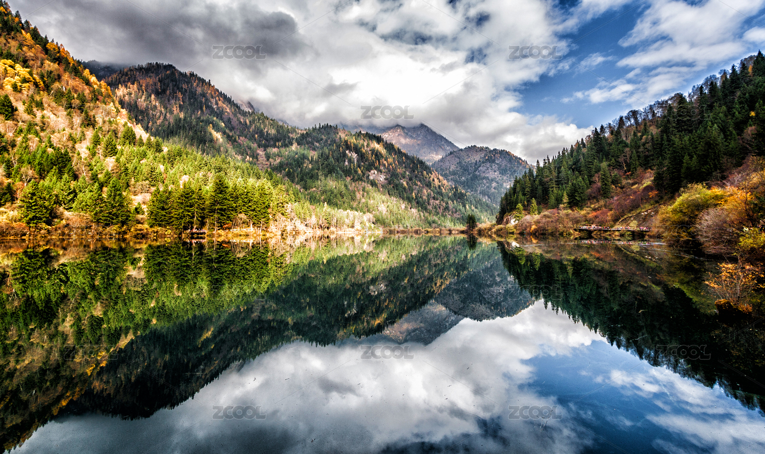 秋天中國(guó)四川阿壩州九寨溝老虎海景點(diǎn)