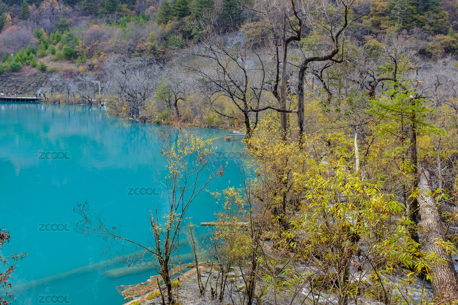 四川九寨溝風(fēng)景區(qū)秋季的湖面