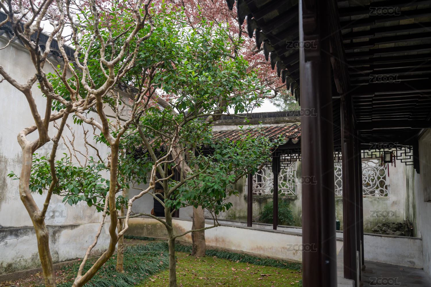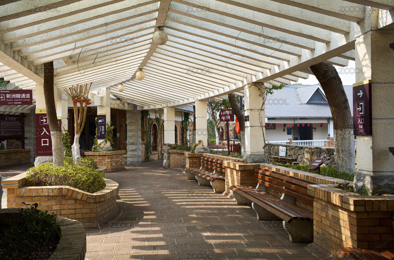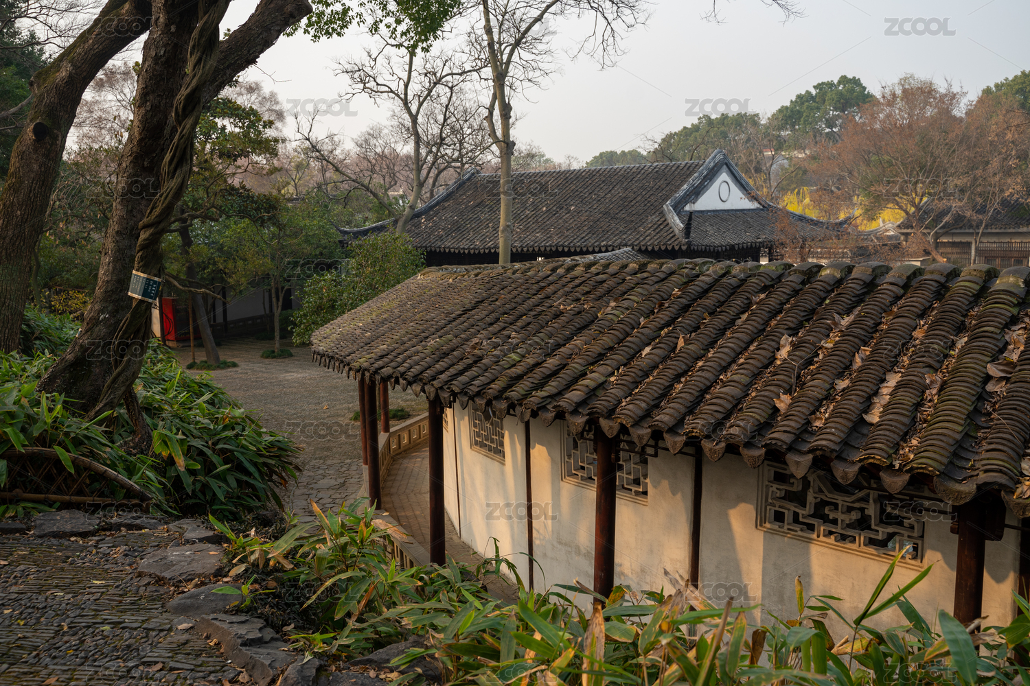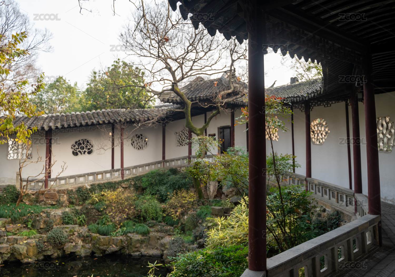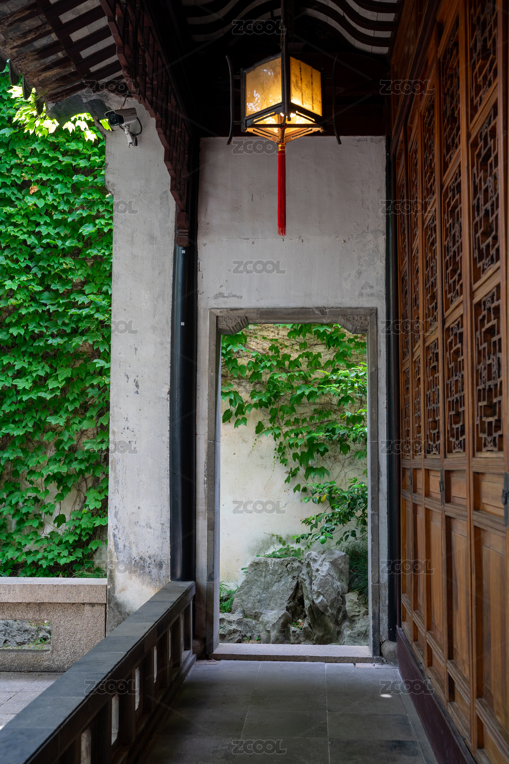 中式復(fù)古典傳統(tǒng)建筑走廊連廊回廊柱子欄桿