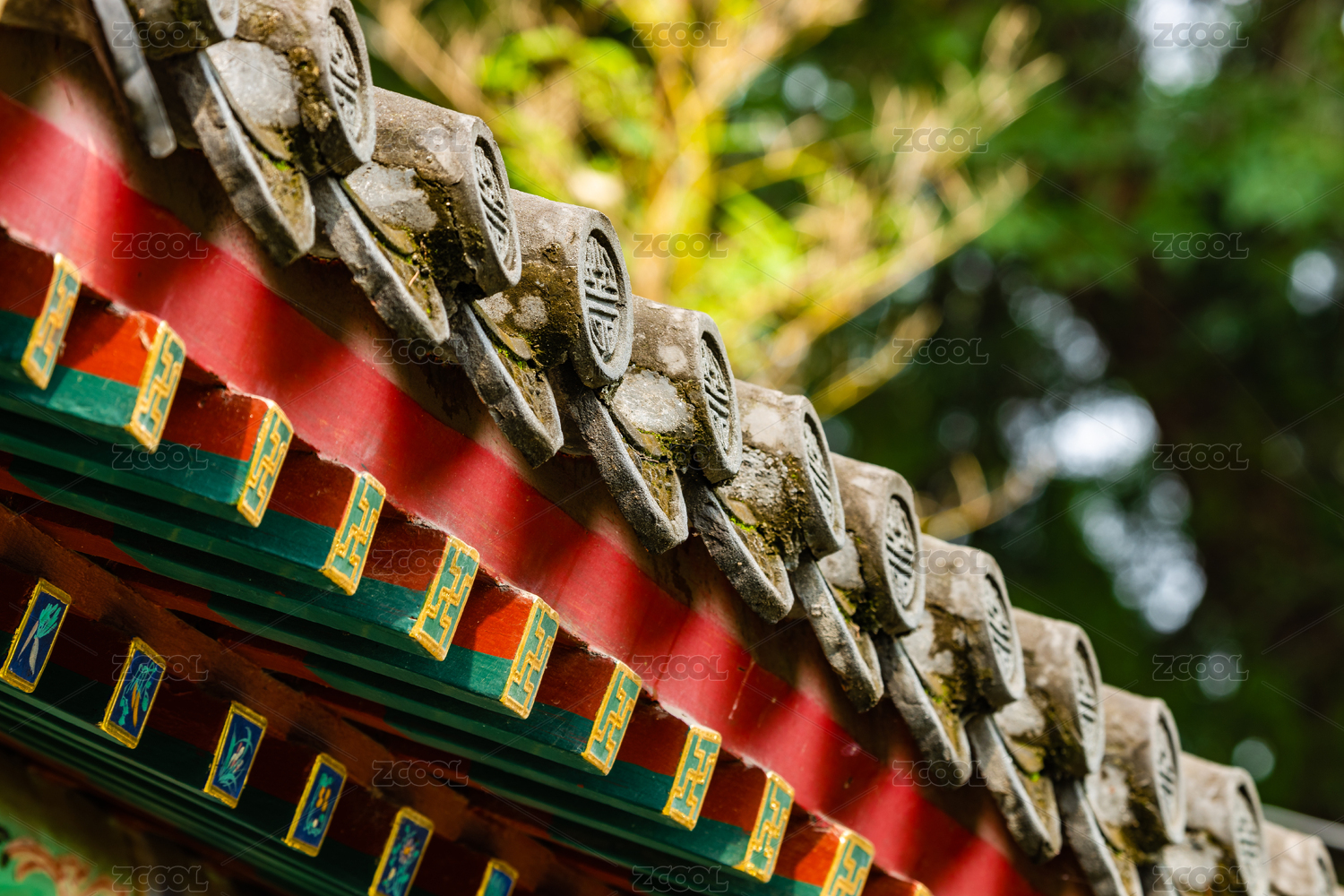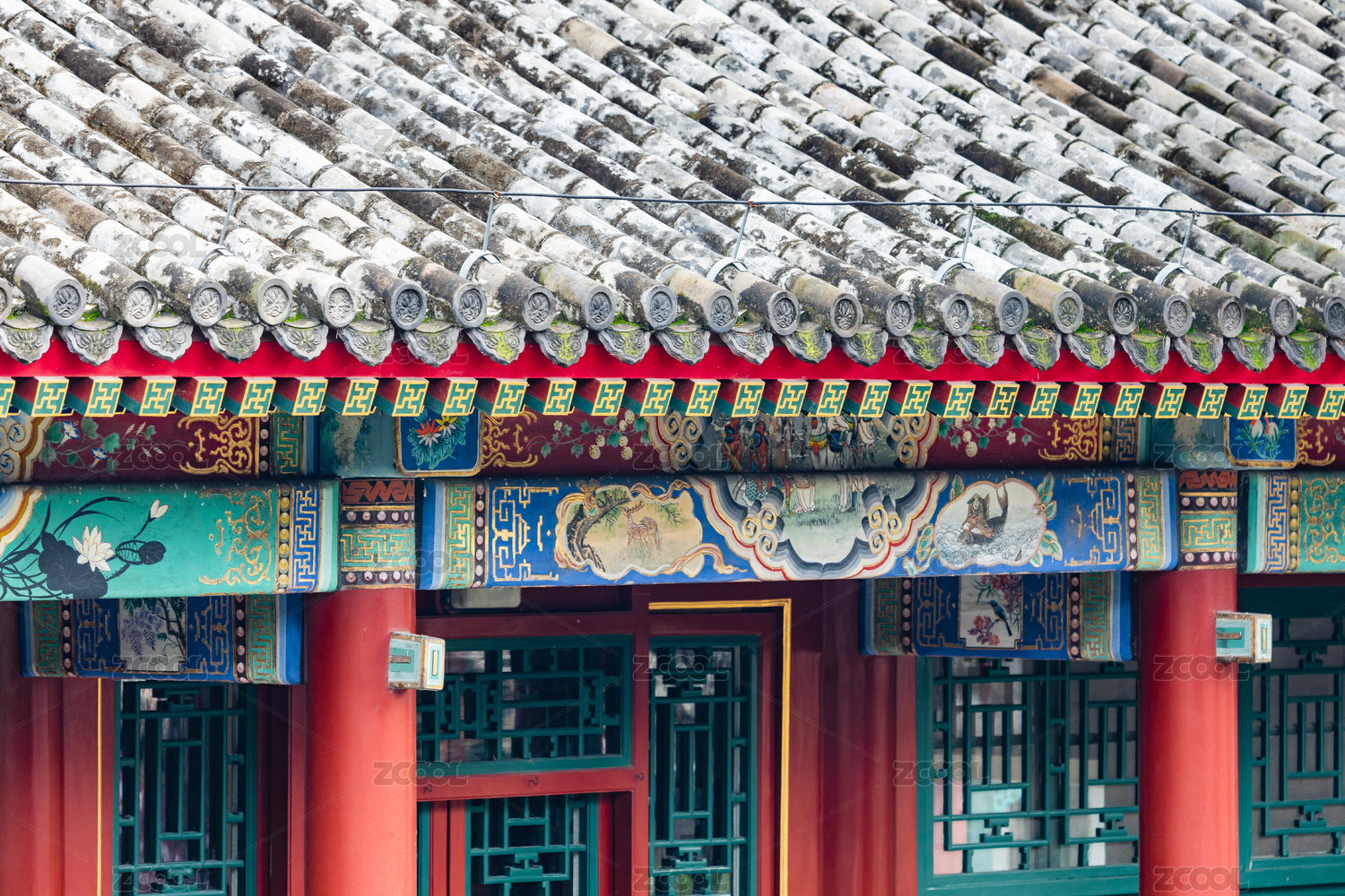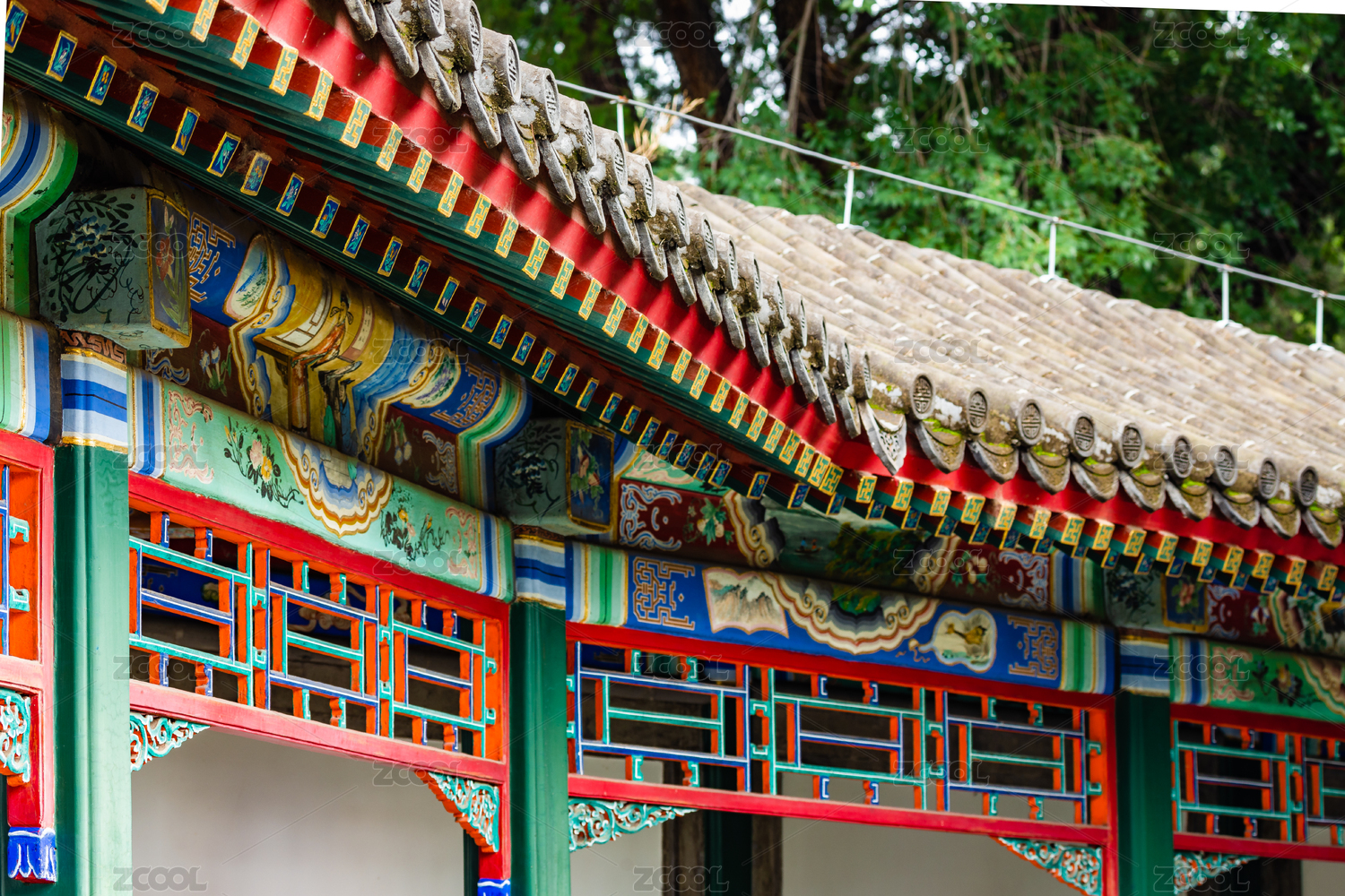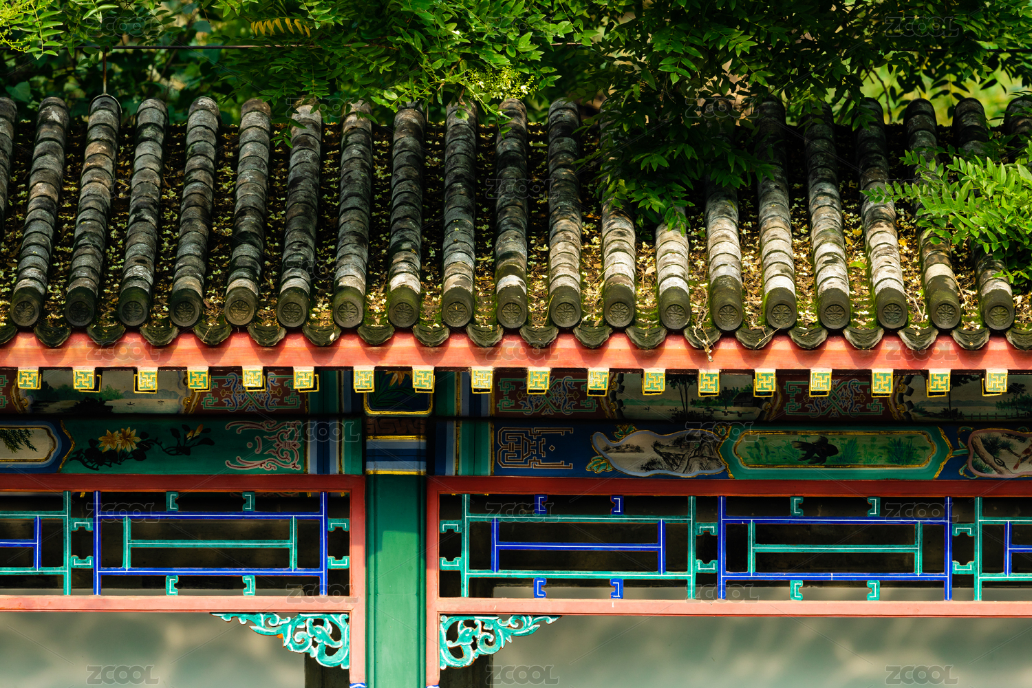 中國(guó)北京北海公園靜心齋的回廊頂部特寫