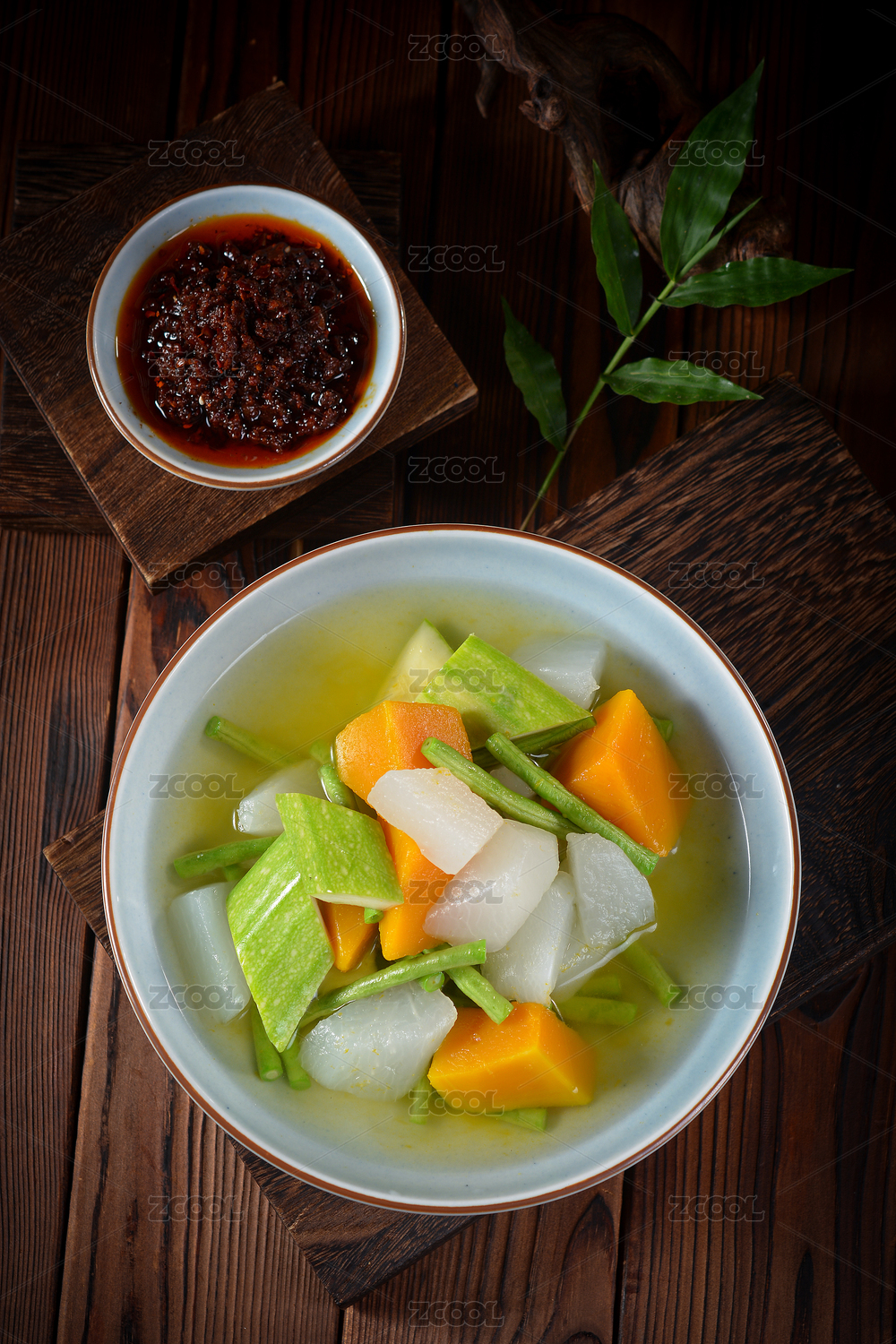 放在盤子里的什錦蔬菜湯