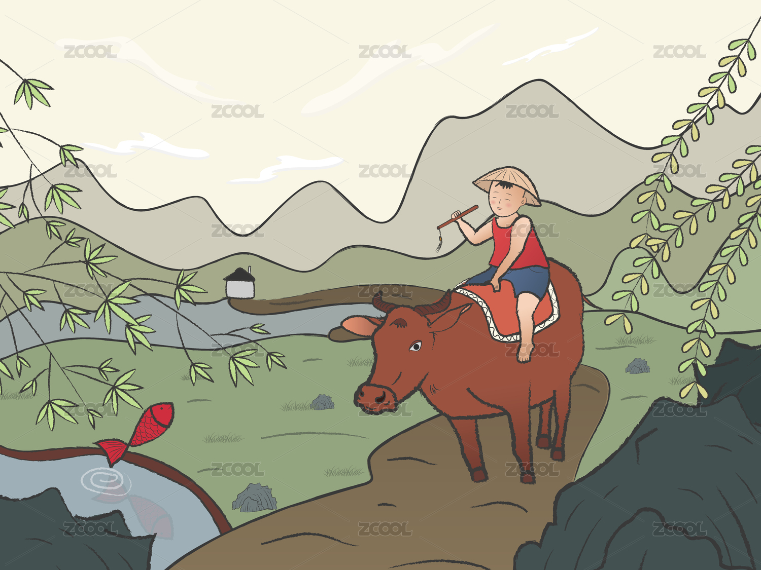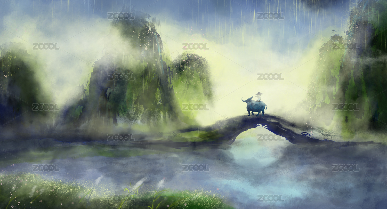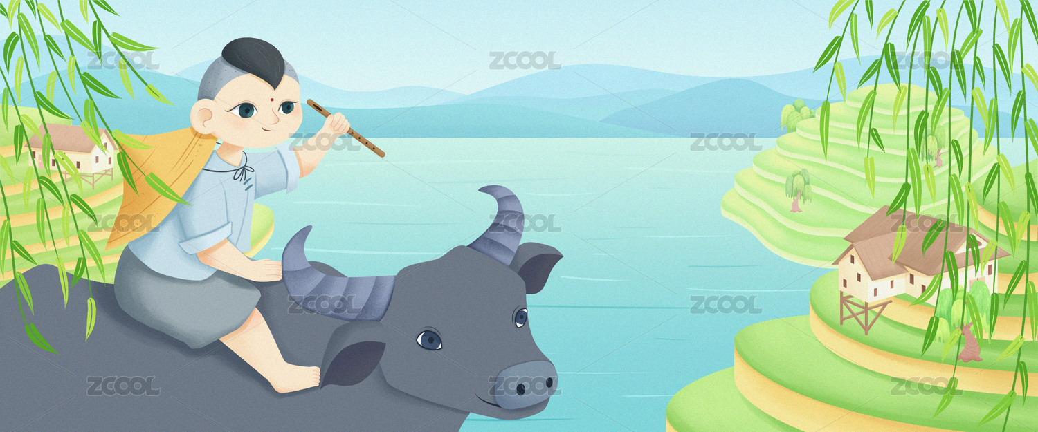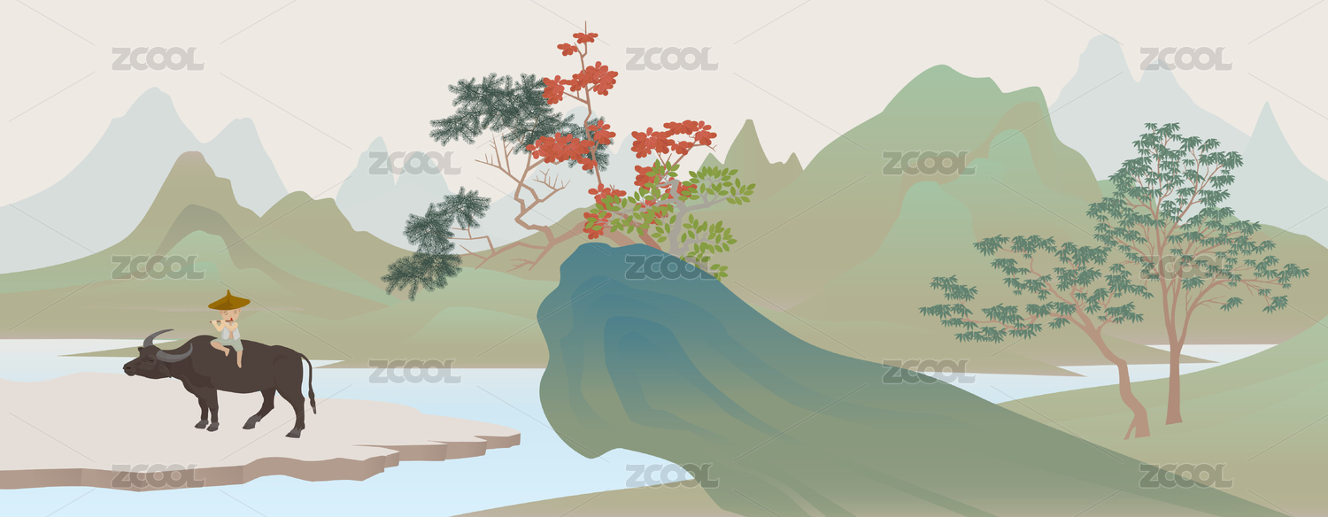 牧童騎牛山水風(fēng)景