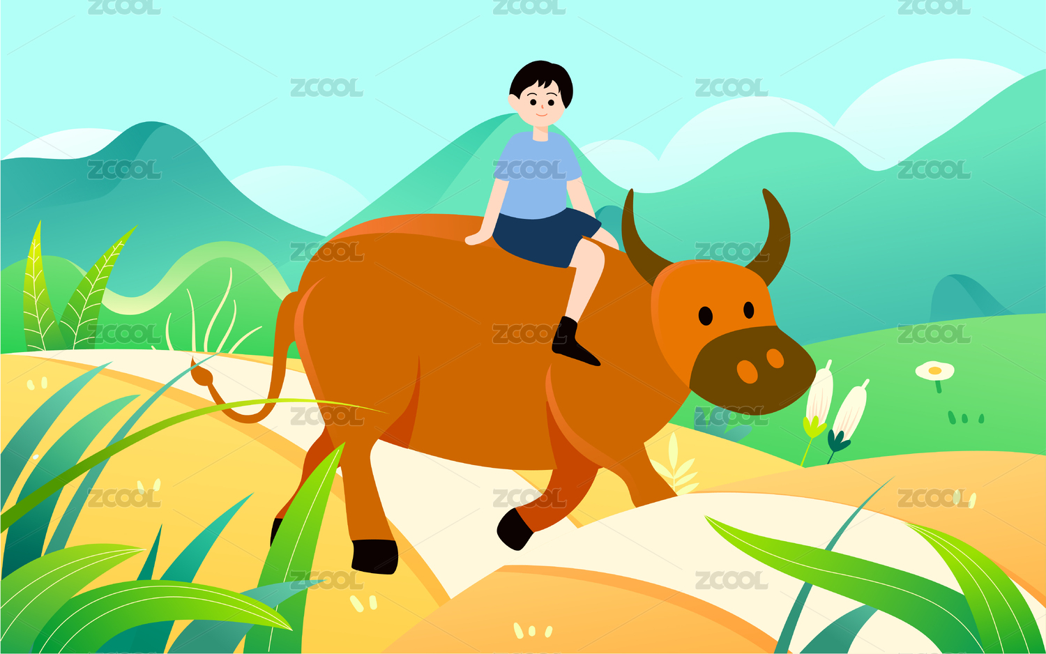 騎牛的人矢量插畫