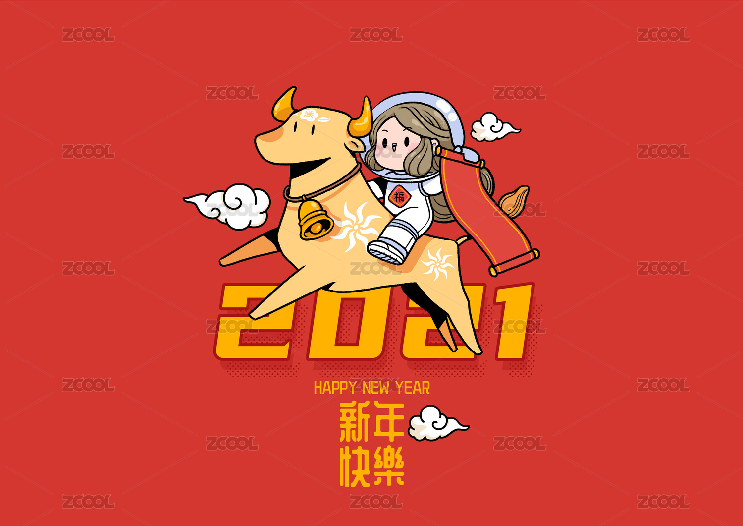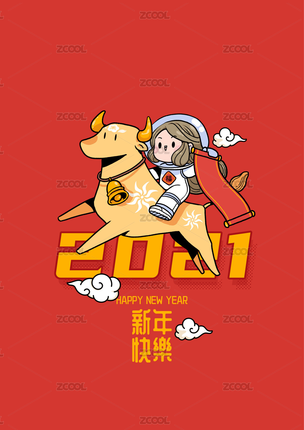 牛年插畫騎牛的小女孩跨越2021