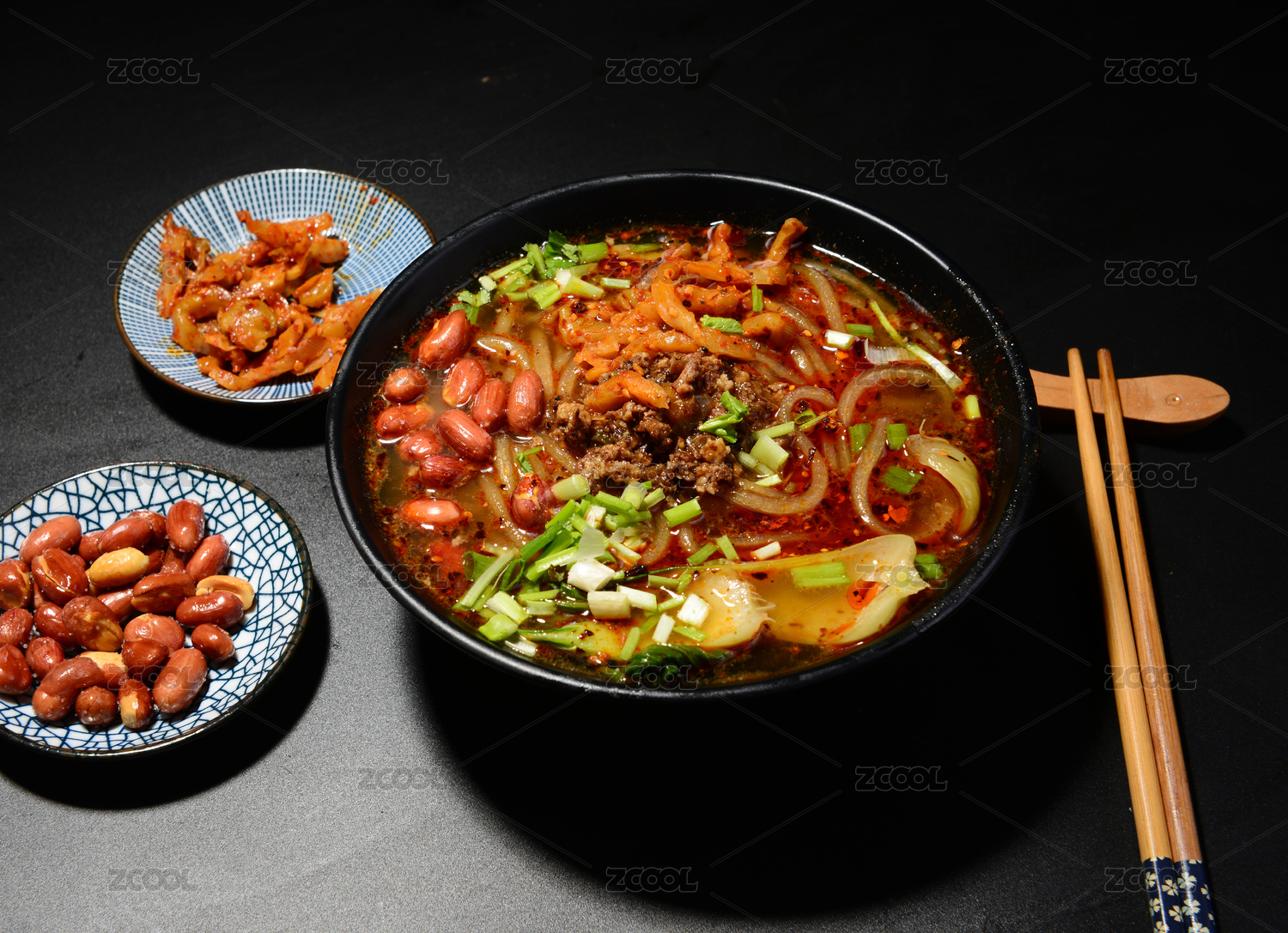 黑色大碗里的重慶街邊小吃酸辣粉