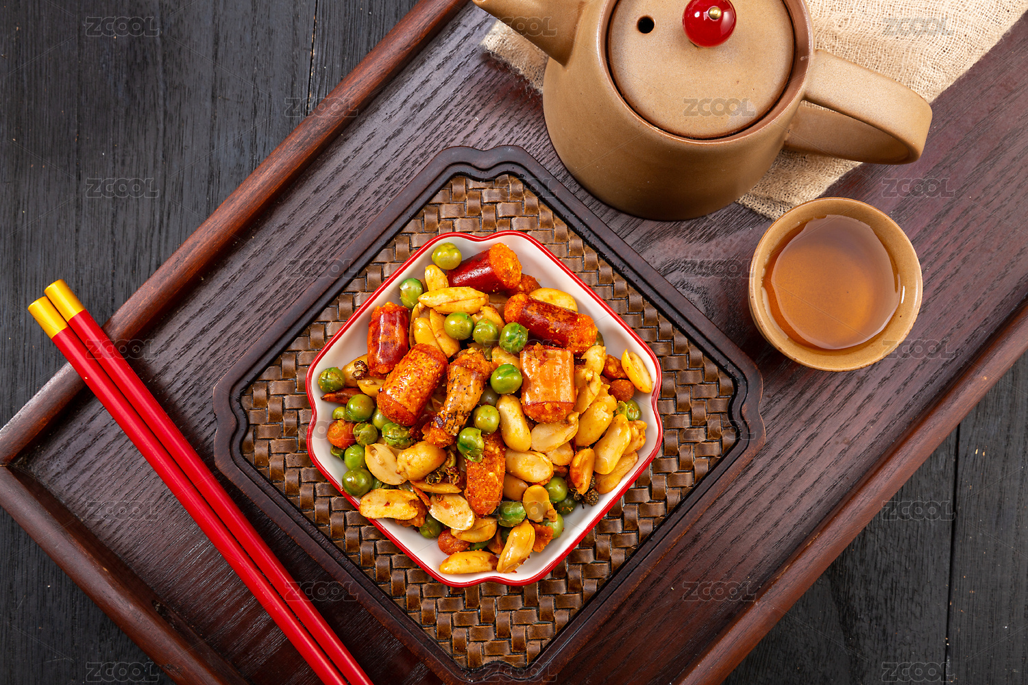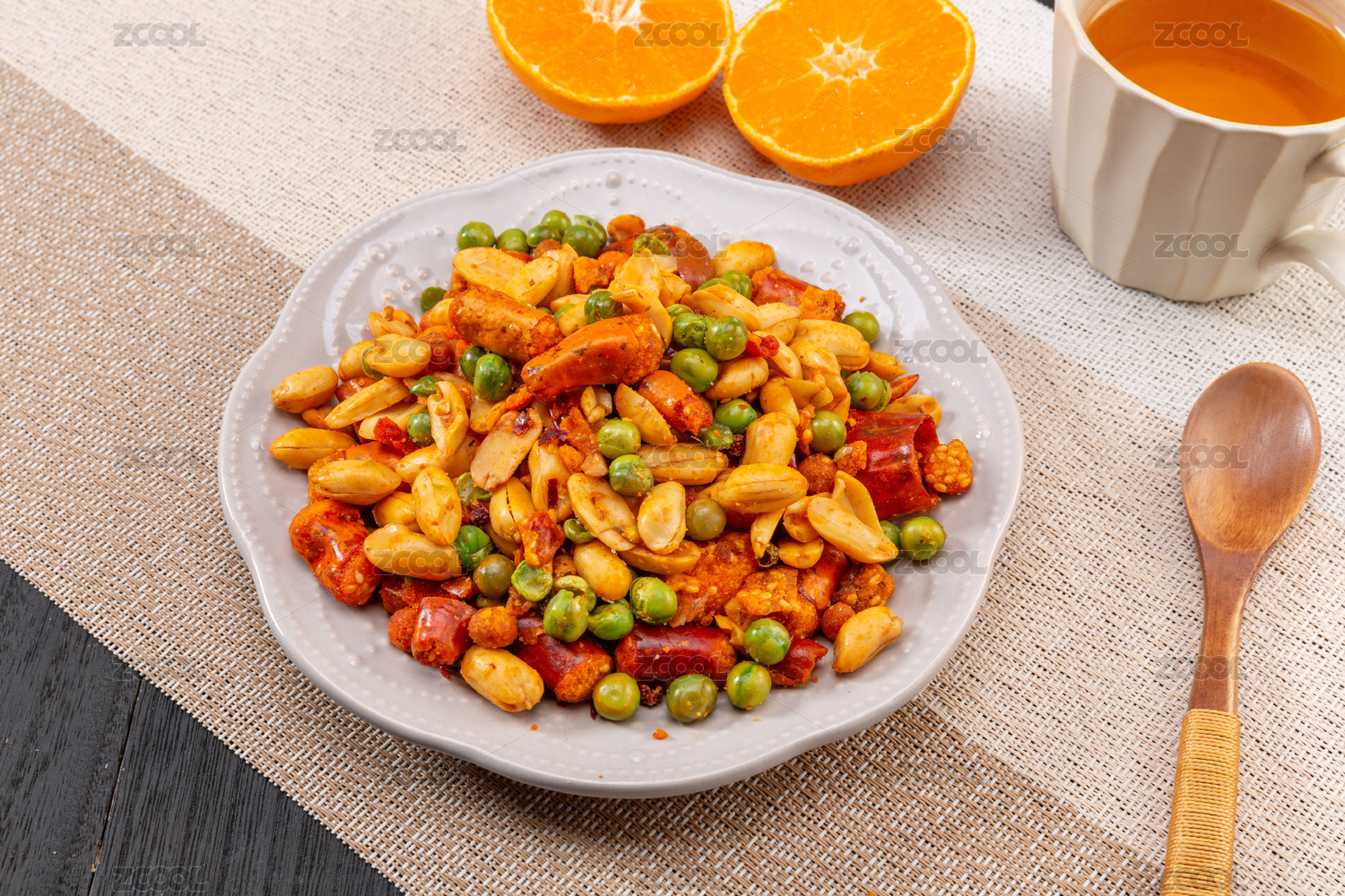 重慶小吃怪味胡豆擺放在桌面上特寫(xiě)