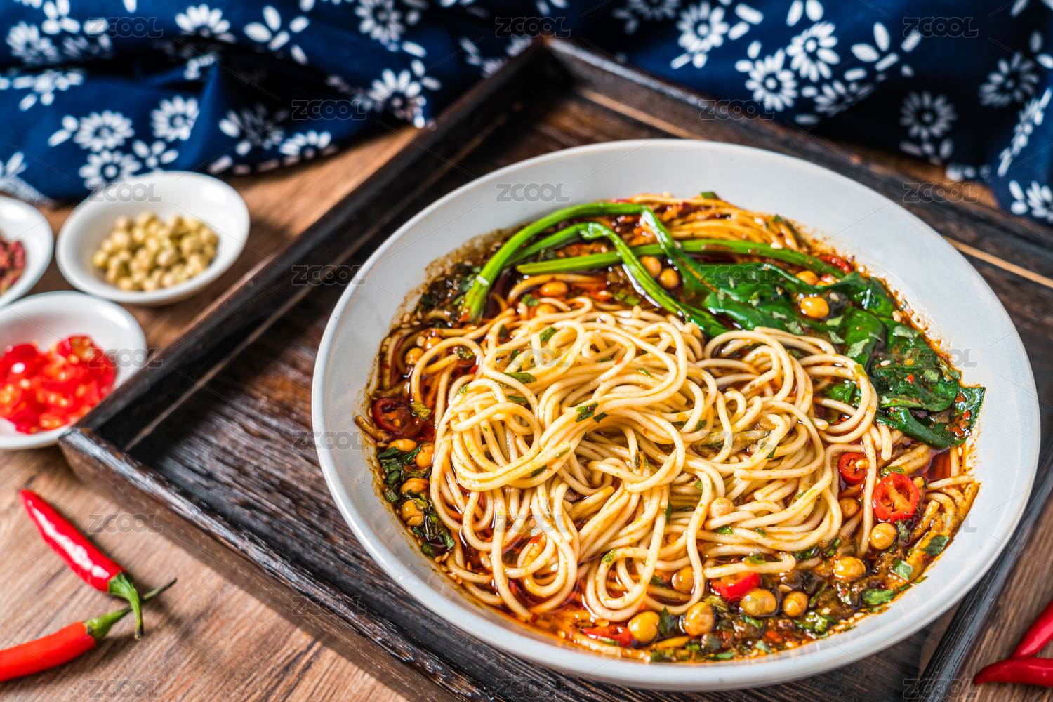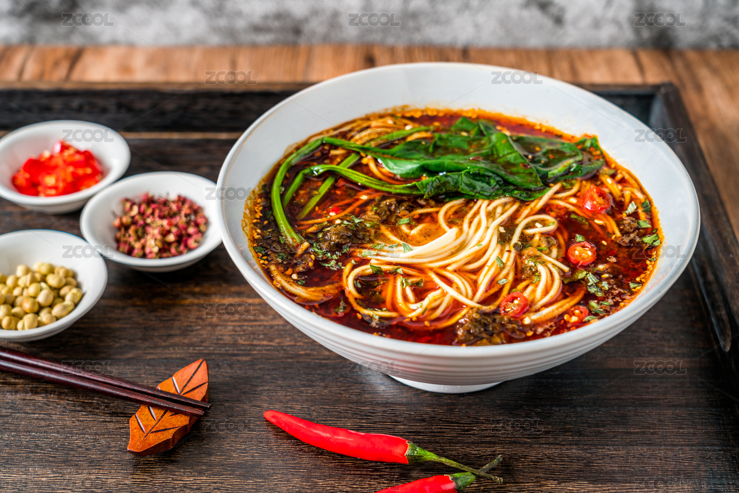 放在木桌上的重慶小吃重慶小面