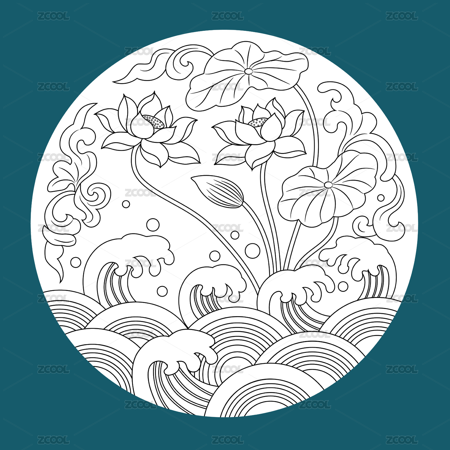中國古典 蓮花 荷花水鳥白描工筆矢量手繪
