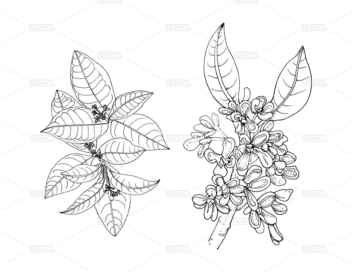 傳統(tǒng)花卉元素白描紋樣24款-矢量圖