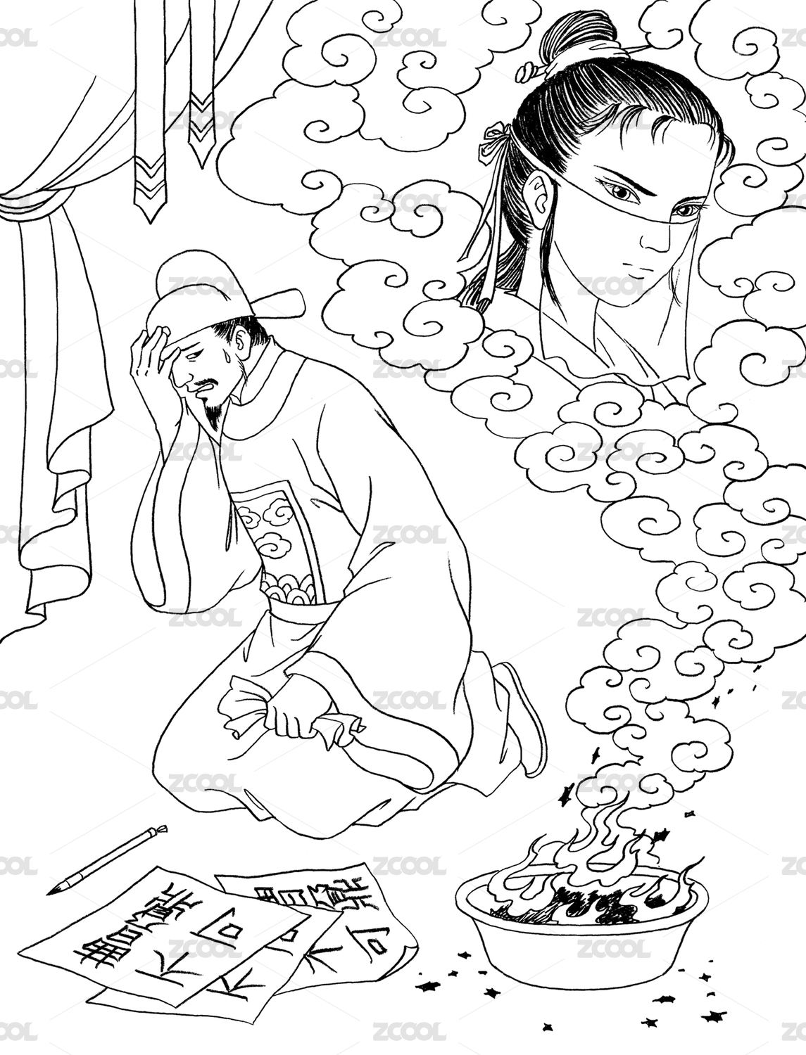 傳統(tǒng)文化元素 菊花 線稿 白描 剪影 手繪