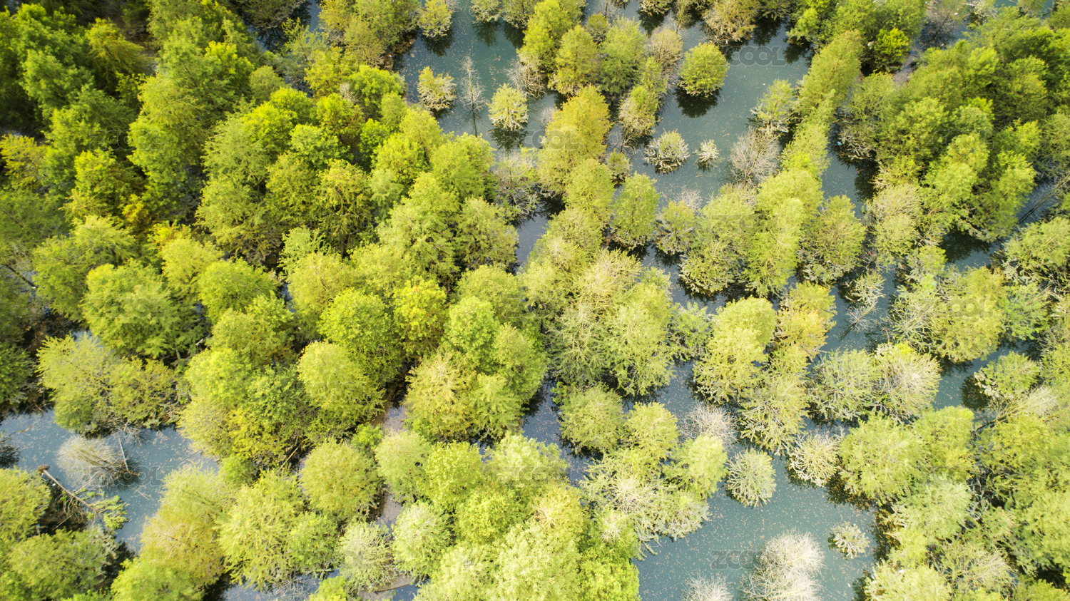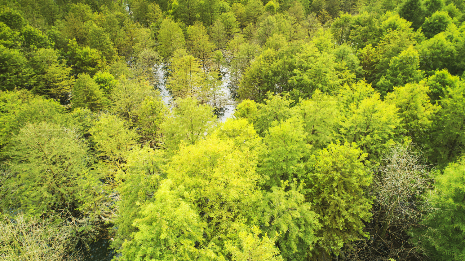 航拍中國(guó)安徽省寧國(guó)市方塘濕地落羽杉