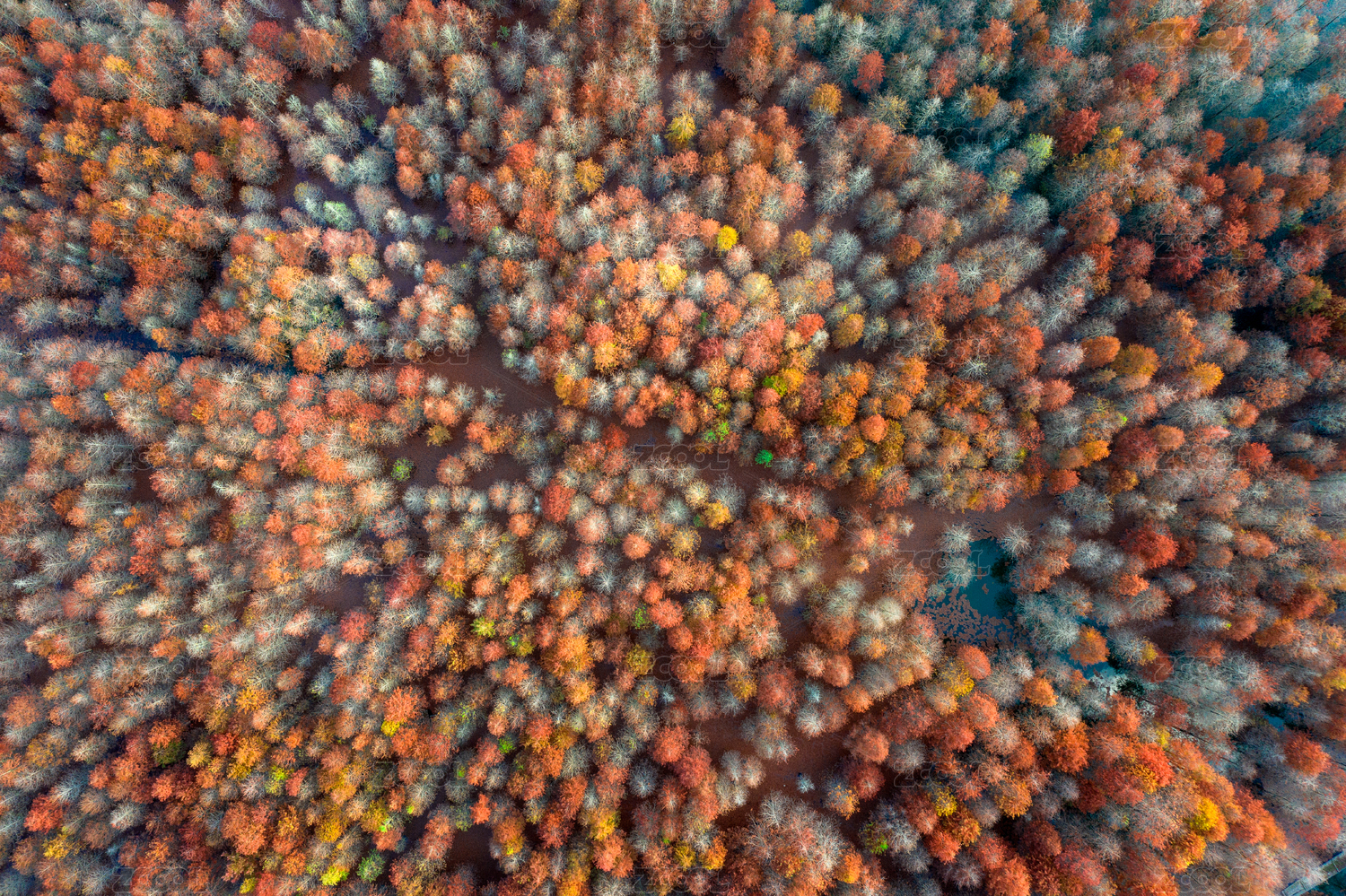 航拍中國(guó)安徽宣城寧國(guó)方塘秋天落羽杉