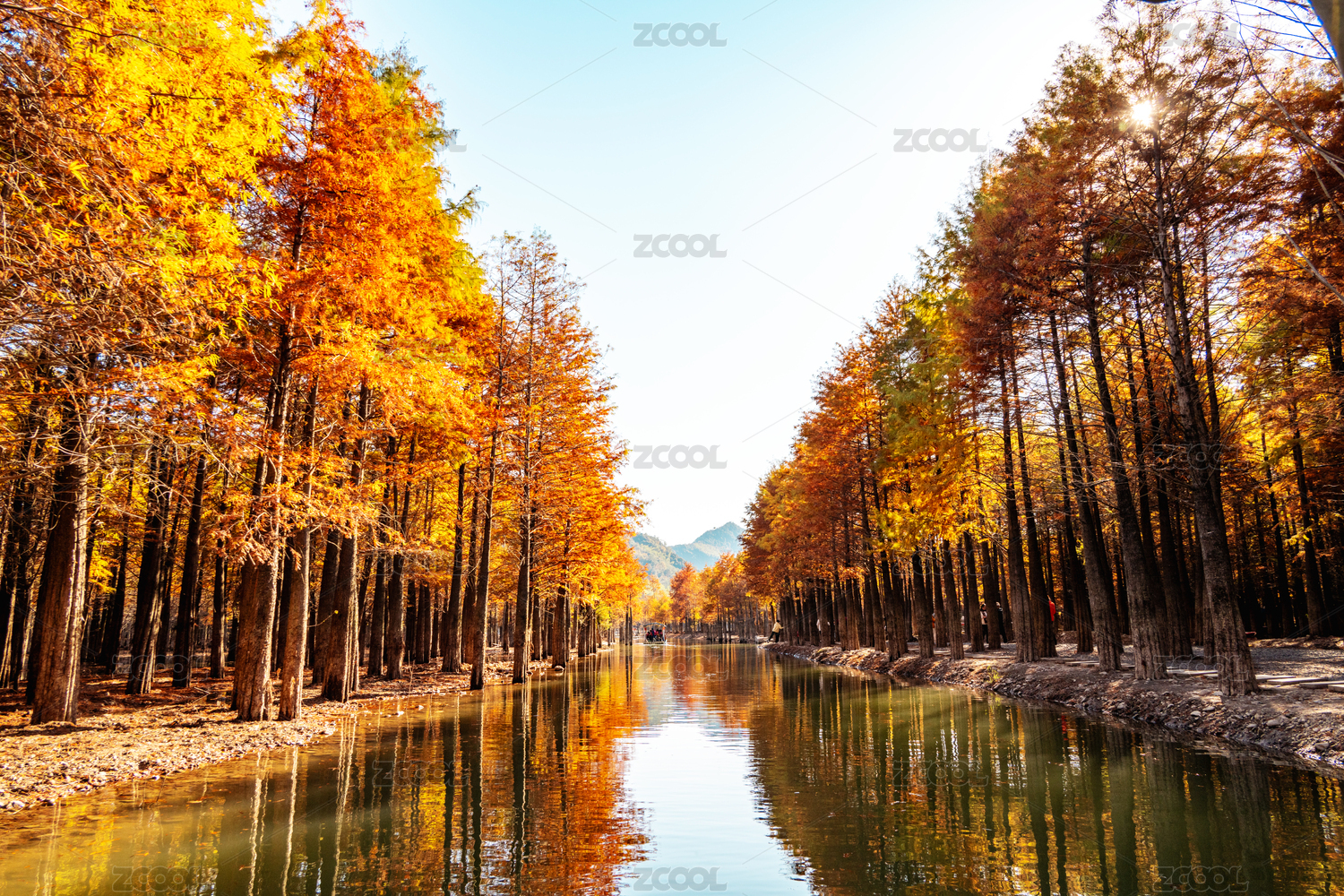 中國(guó)安徽寧國(guó)方塘鄉(xiāng)落羽紅杉林自然風(fēng)光