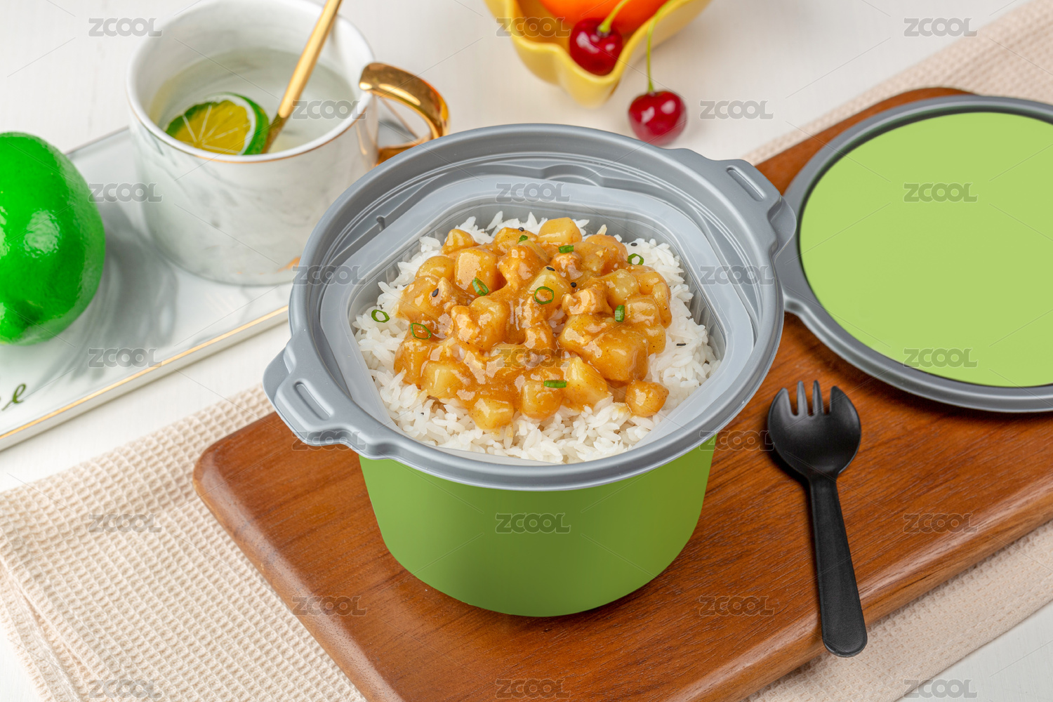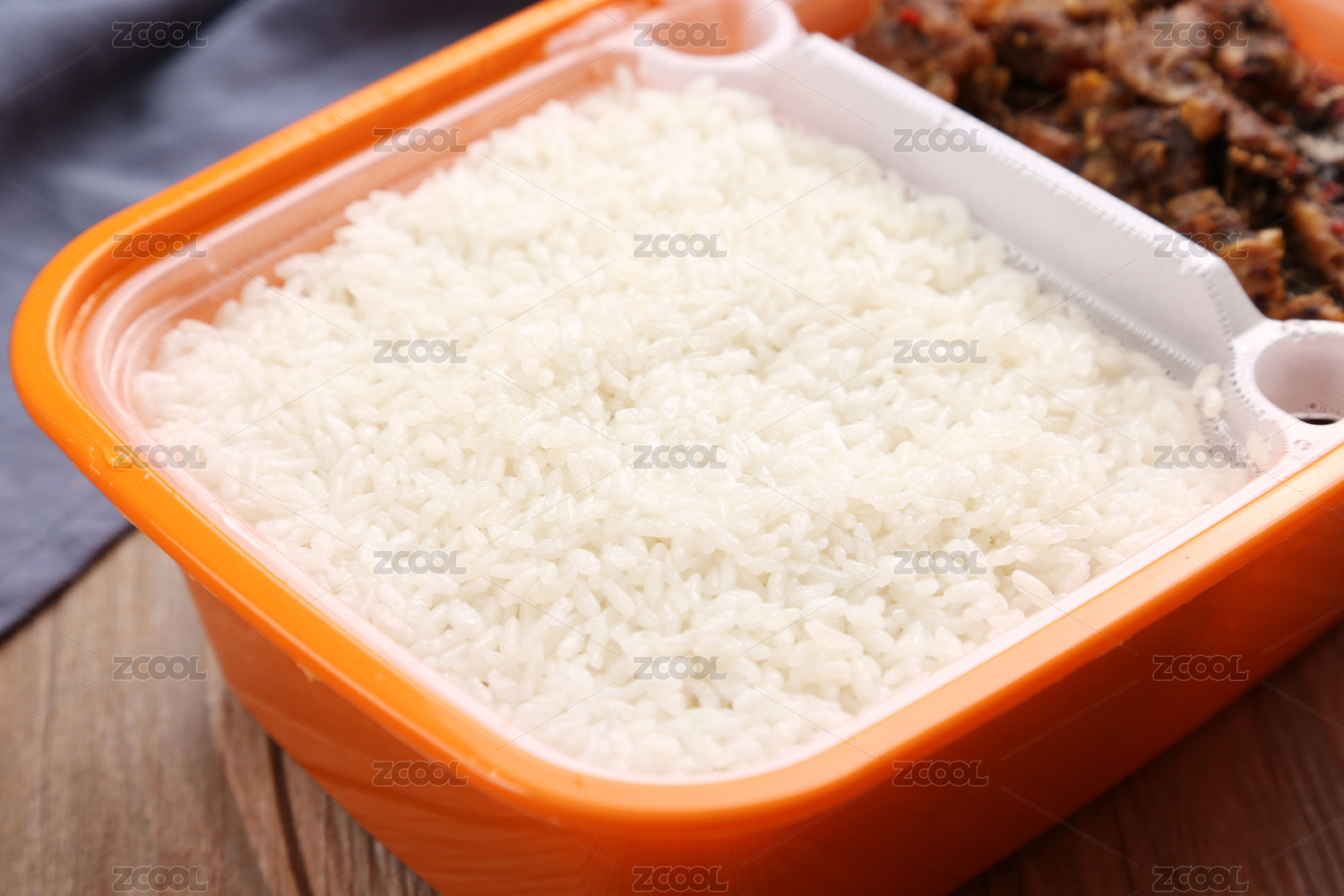 傳統(tǒng)背景中的方便飯盒裝的白米飯