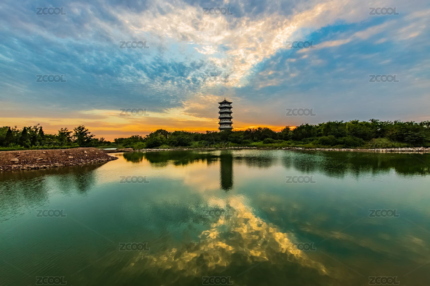 河北省黃驊市渤海灣貝殼湖五行塔園林建筑