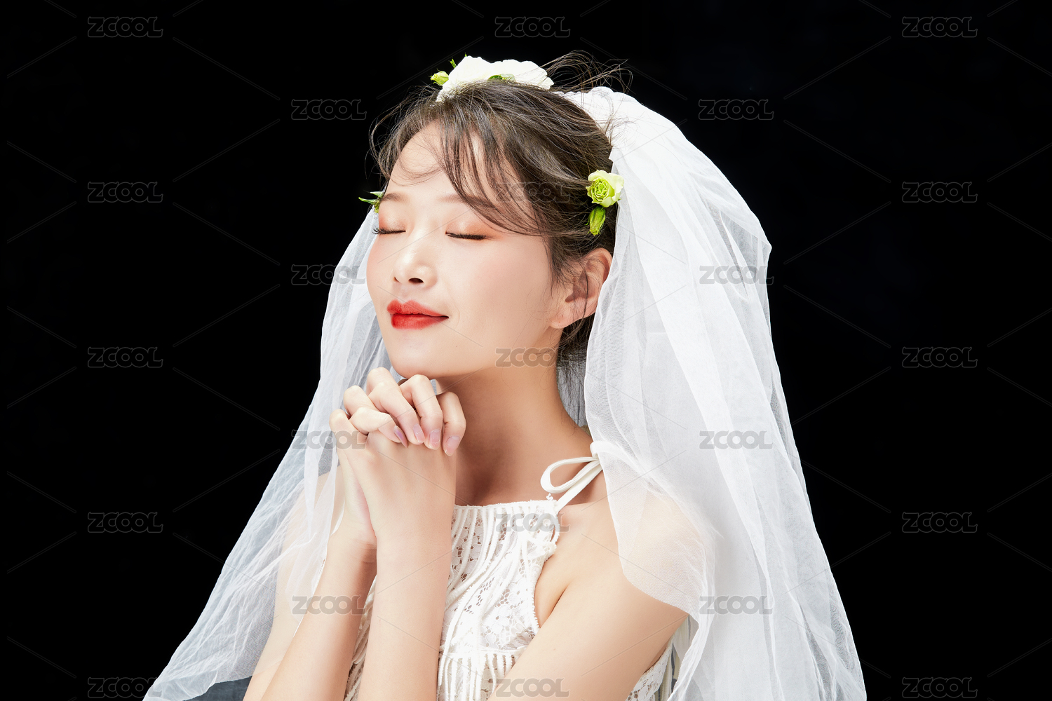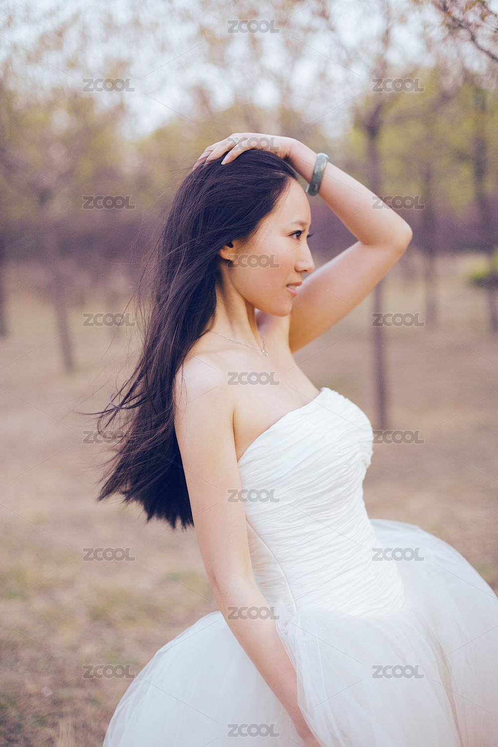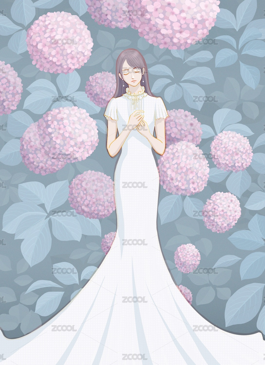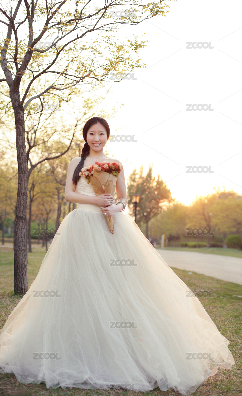 新婚的新娘手拿捧花站在花叢中,浪漫愛情最終走進(jìn)了婚姻
